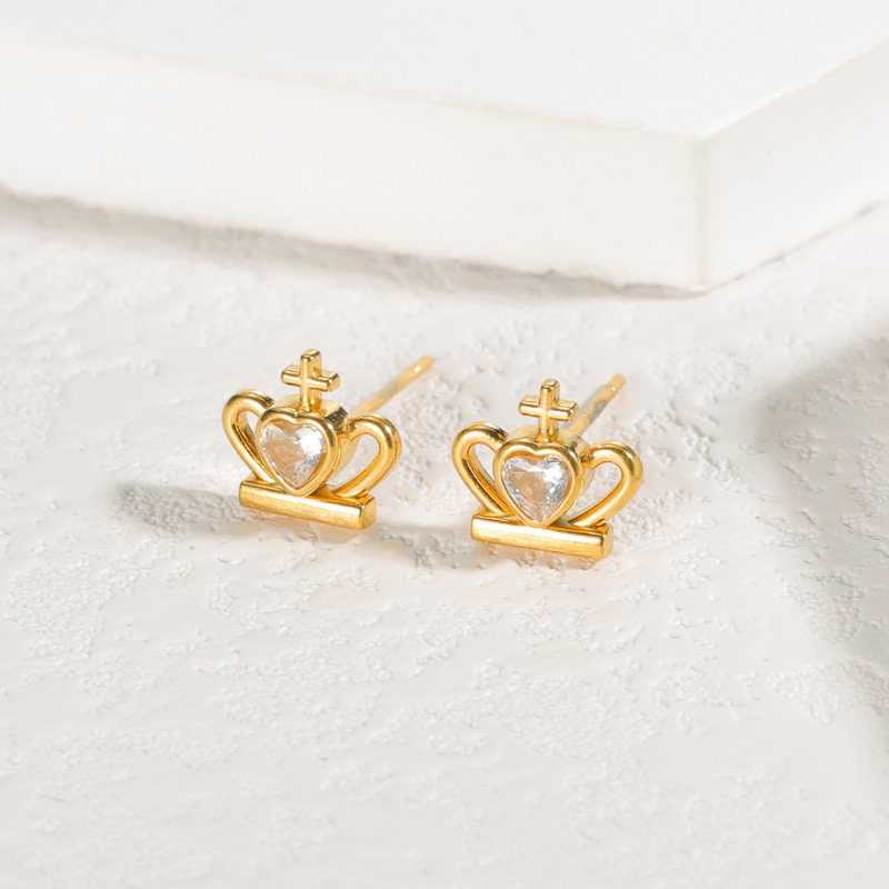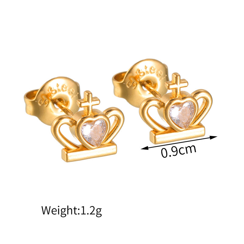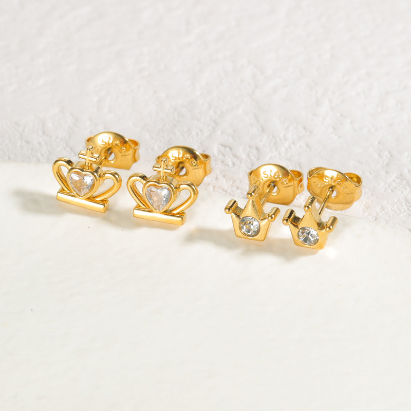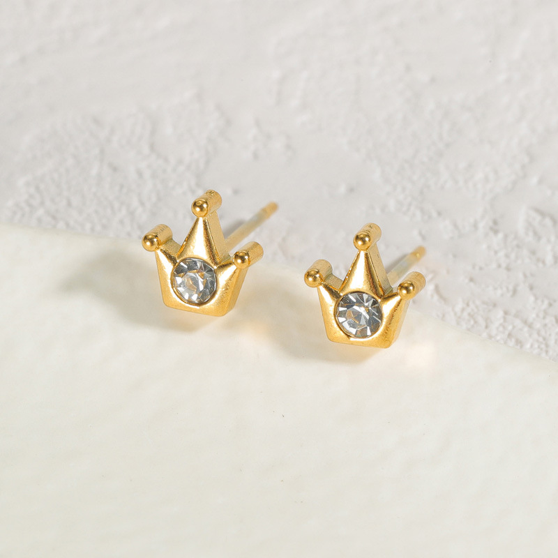clou d'oreille en acier inoxydable avec stras, Acier inoxydable 304, couronne, Placage, normes différentes pour le choix & pour femme & avec strass, doré, Vendu par paire