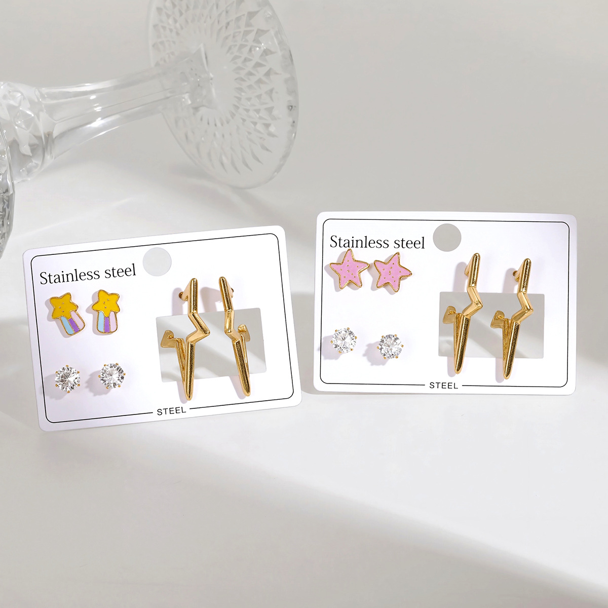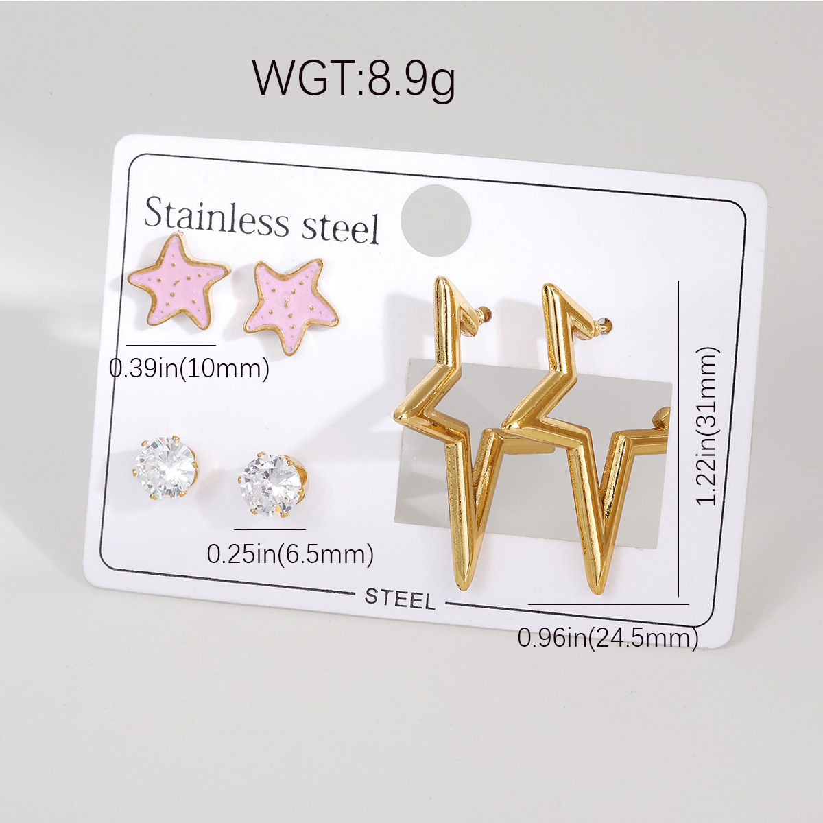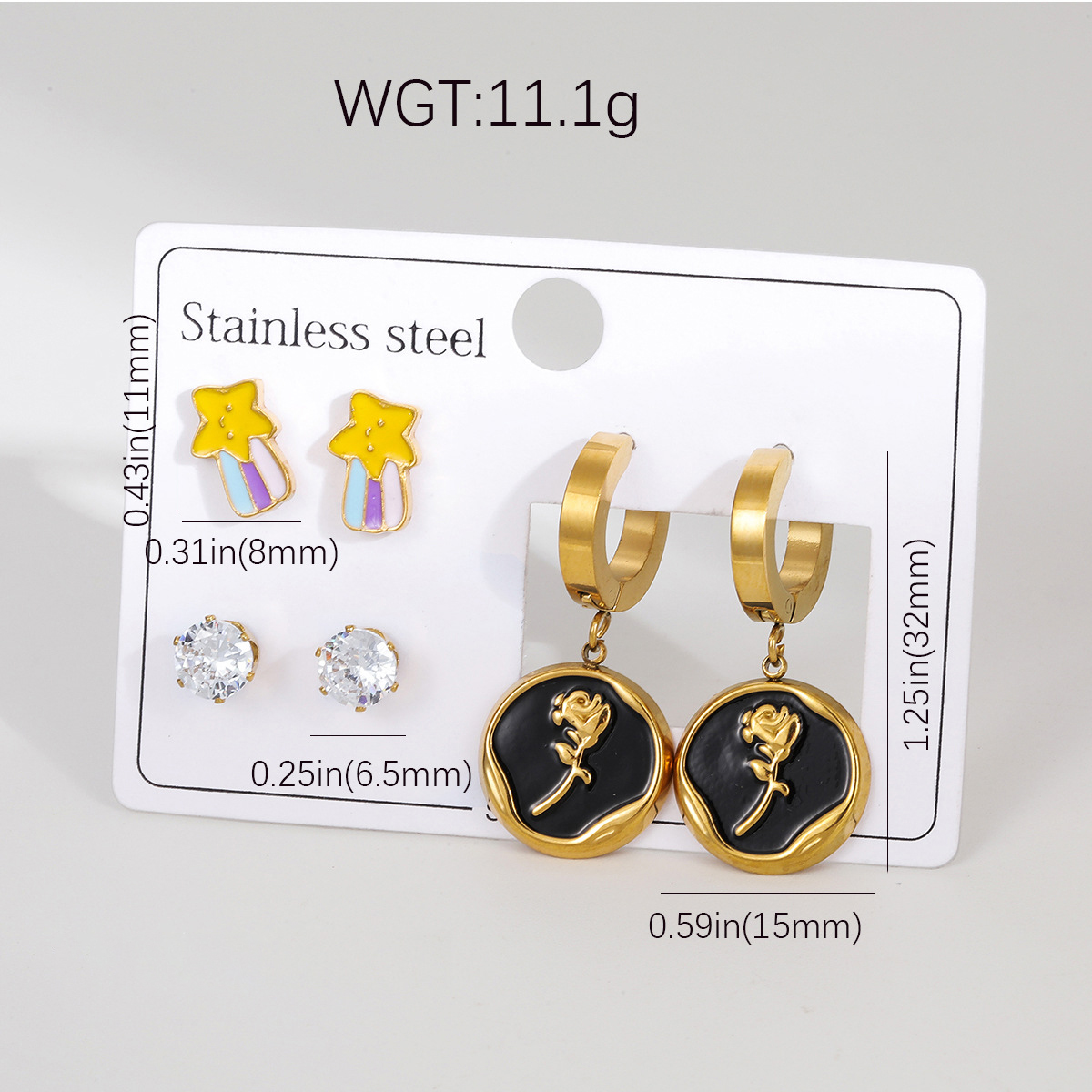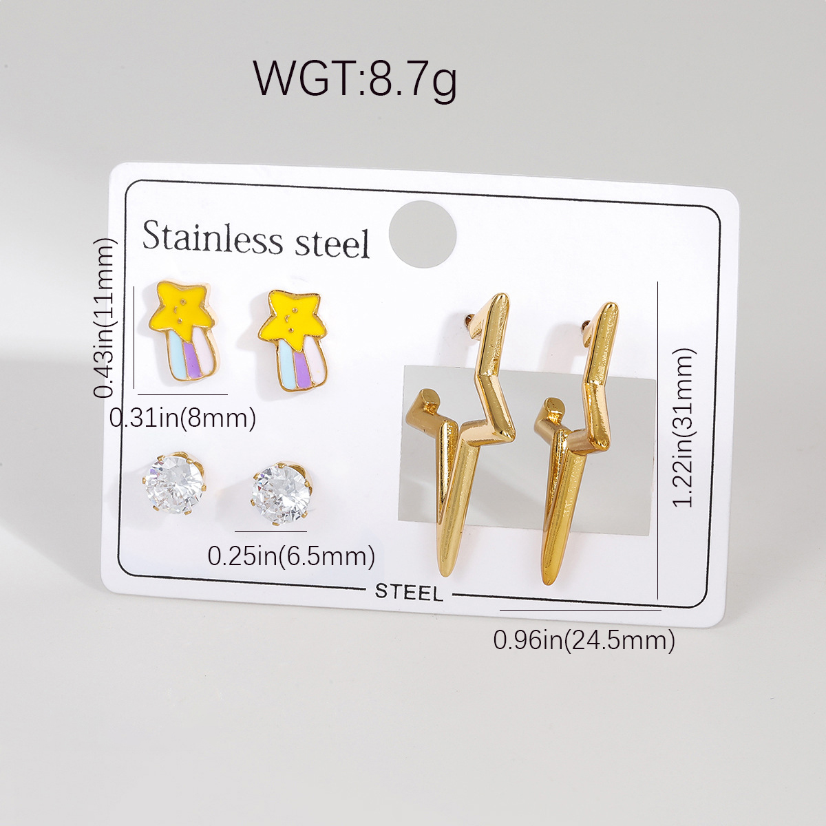 clou d'oreille en acier inoxydable avec stras, Acier inoxydable 304, Placage, trois pièces & styles différents pour le choix & pour femme & émail & avec strass, doré, Vendu par fixé