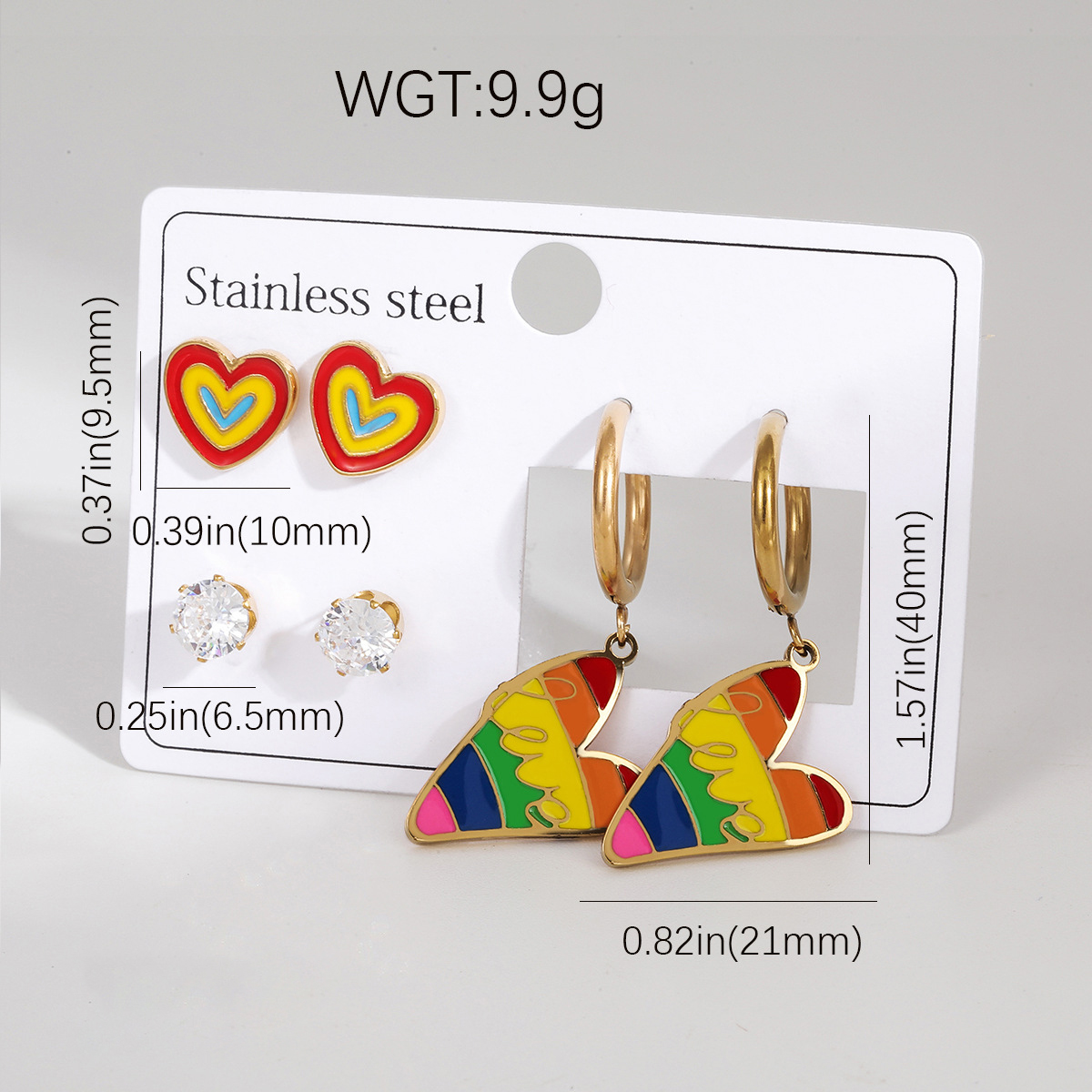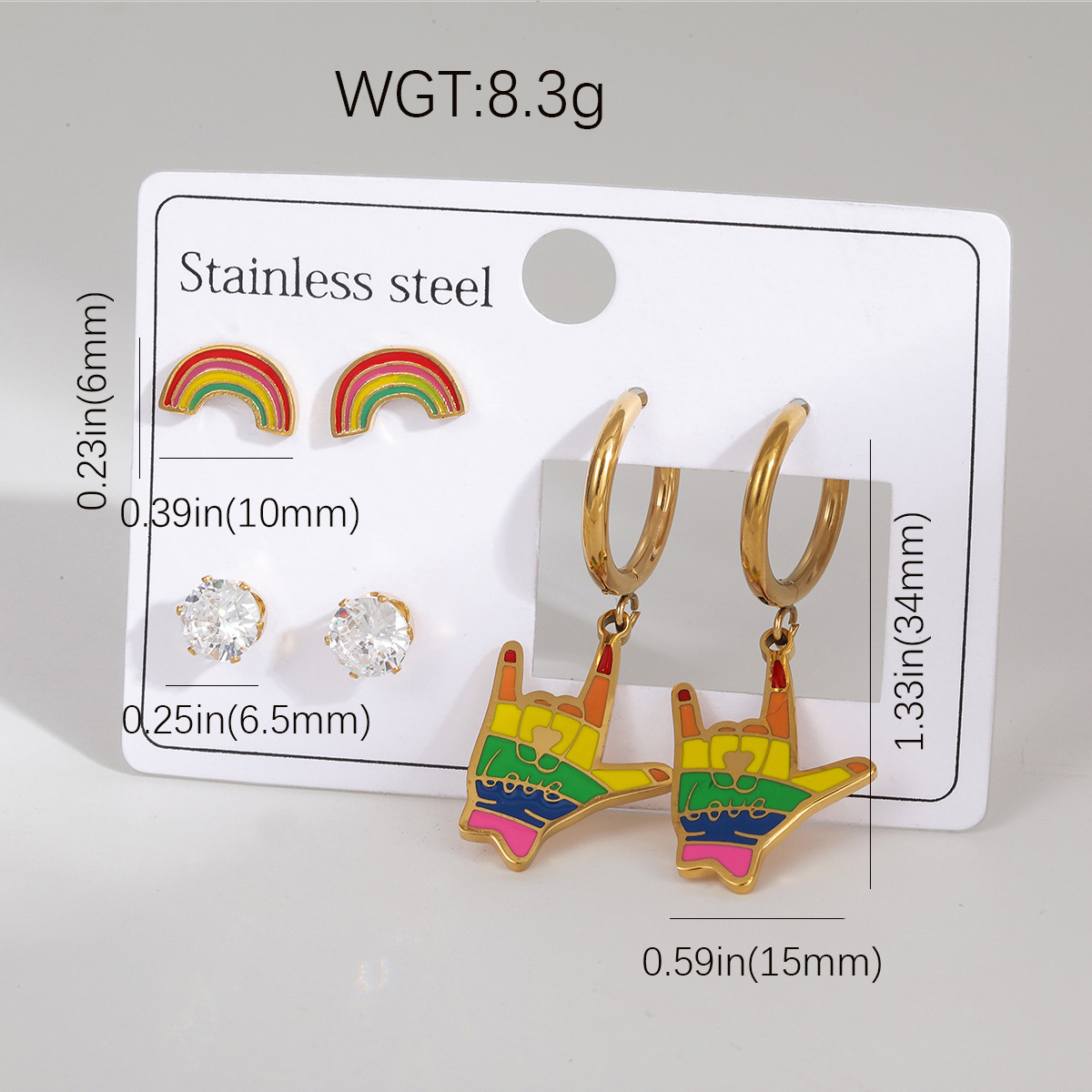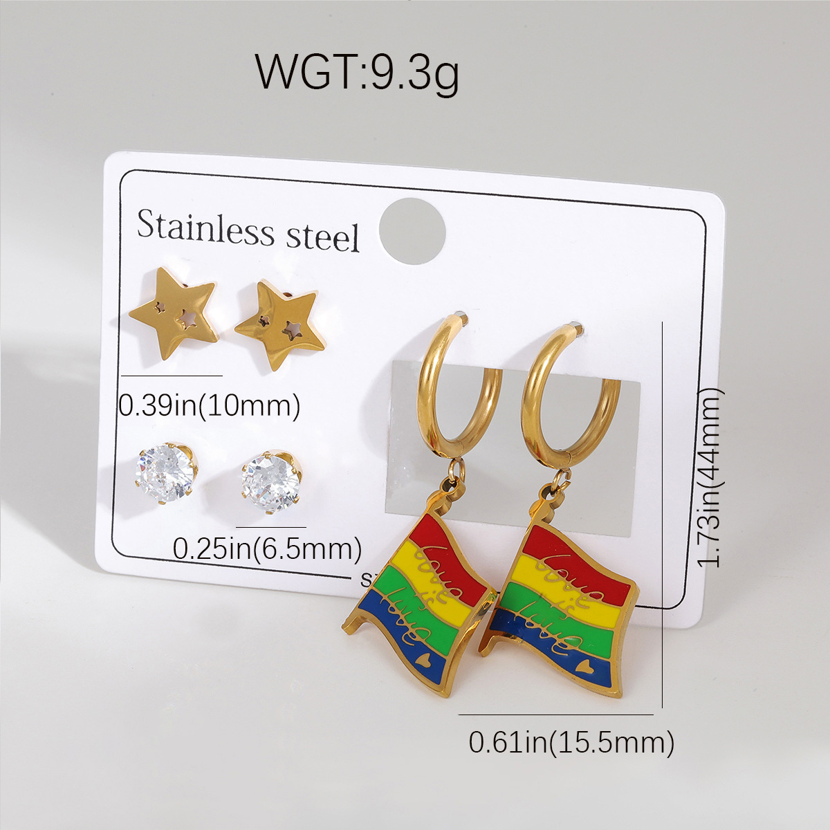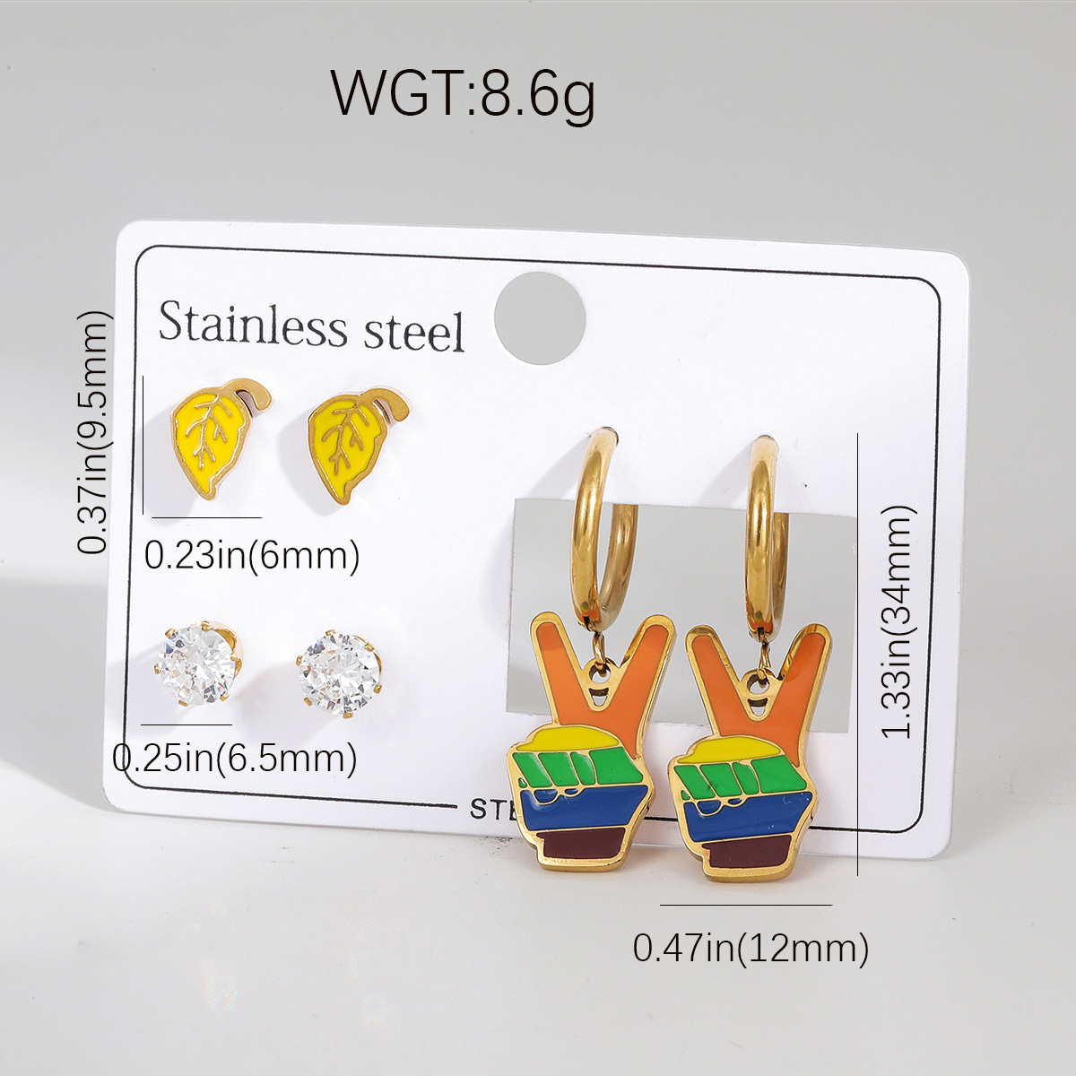clou d'oreille en acier inoxydable avec stras, Acier inoxydable 304, Placage, trois pièces & styles différents pour le choix & pour femme & émail & avec strass, doré, Vendu par fixé