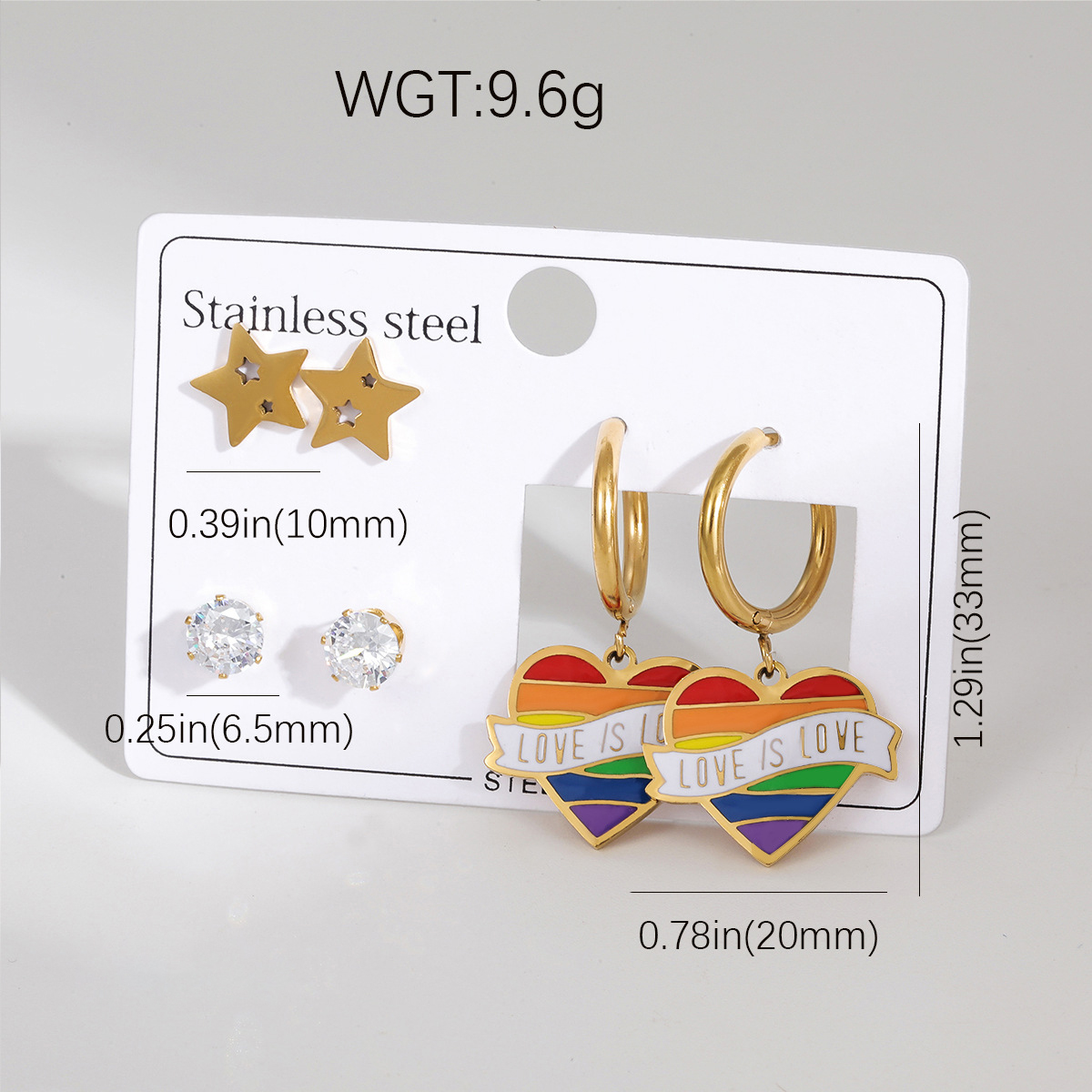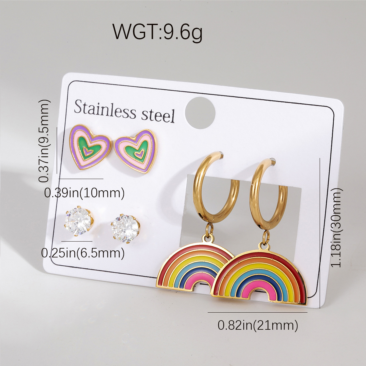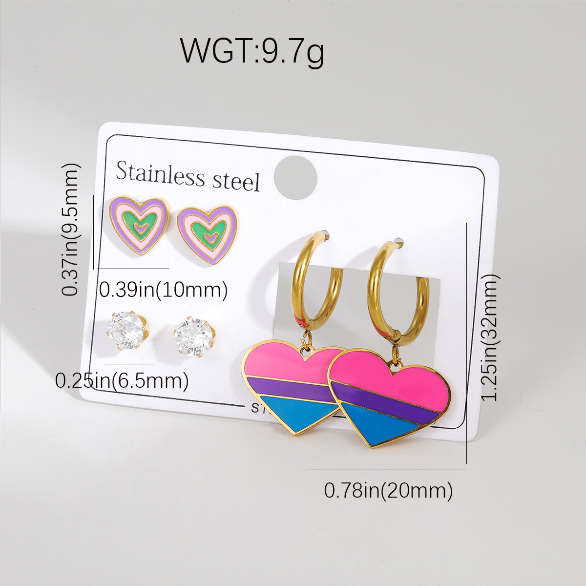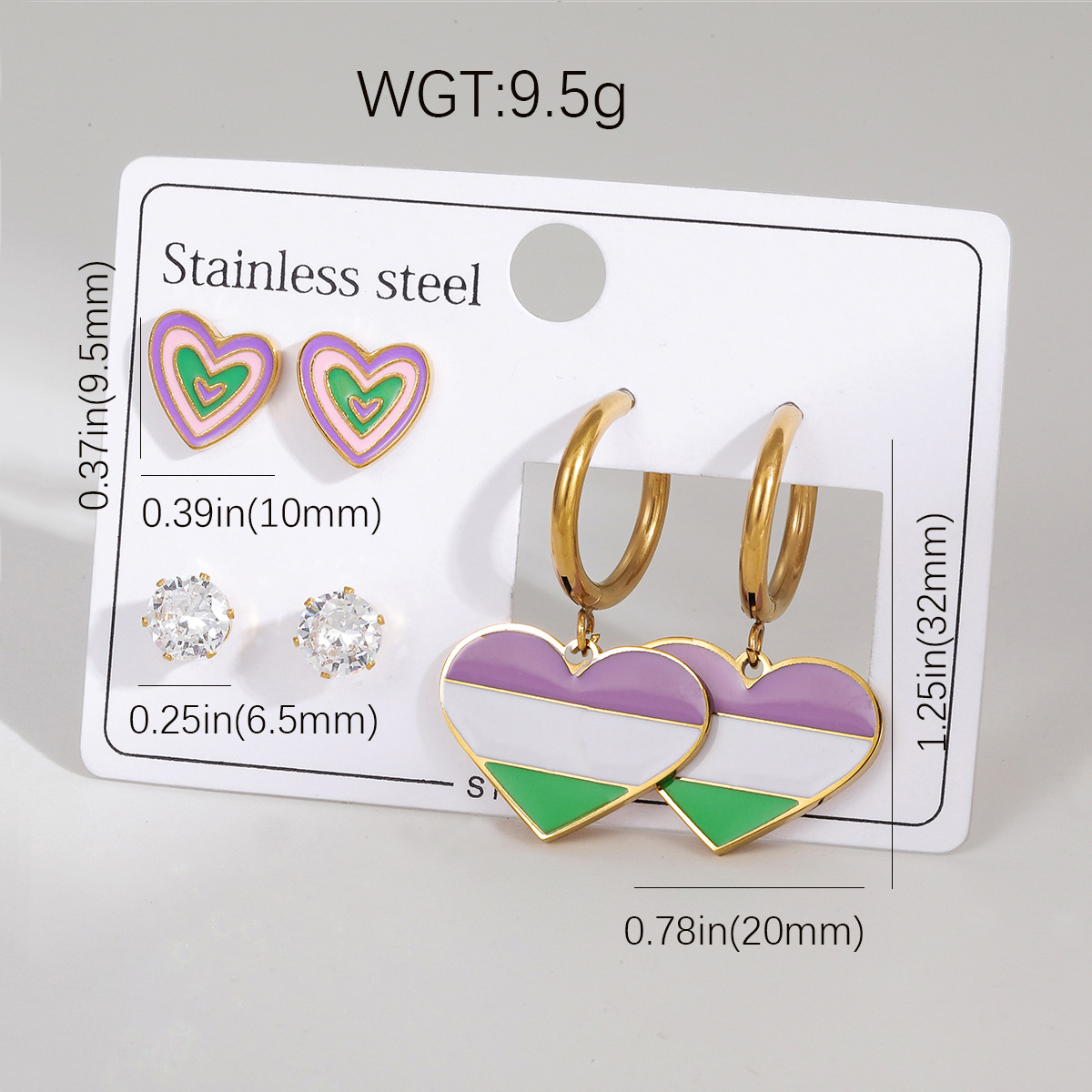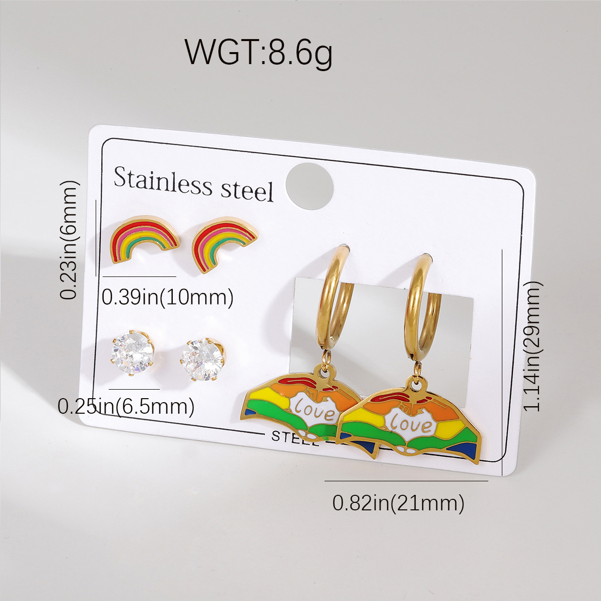 clou d'oreille en acier inoxydable avec stras, Acier inoxydable 304, Placage, trois pièces & styles différents pour le choix & pour femme & émail & avec strass, doré, Vendu par fixé