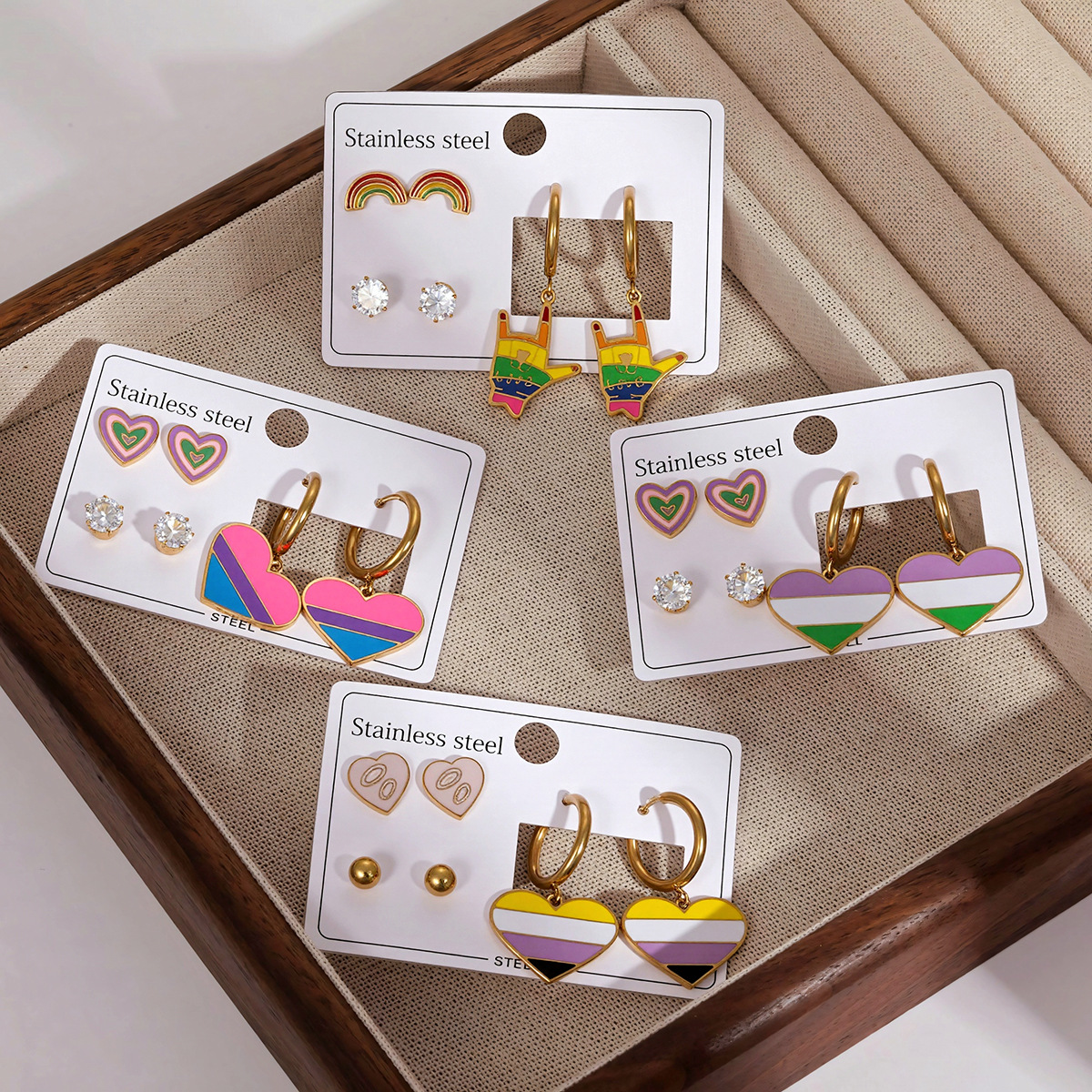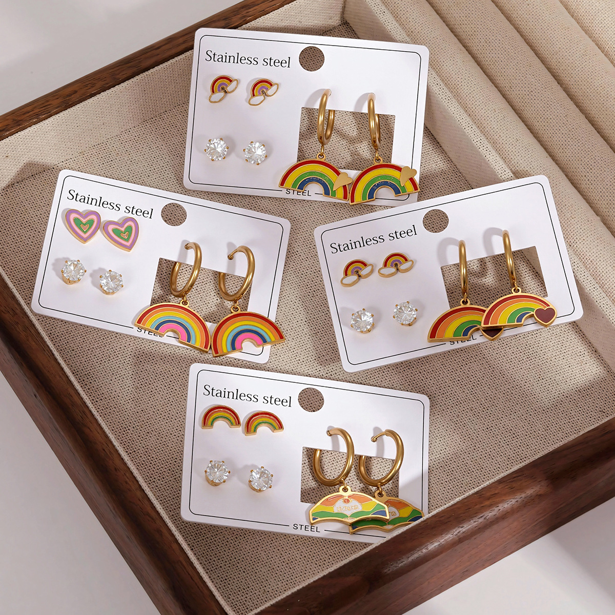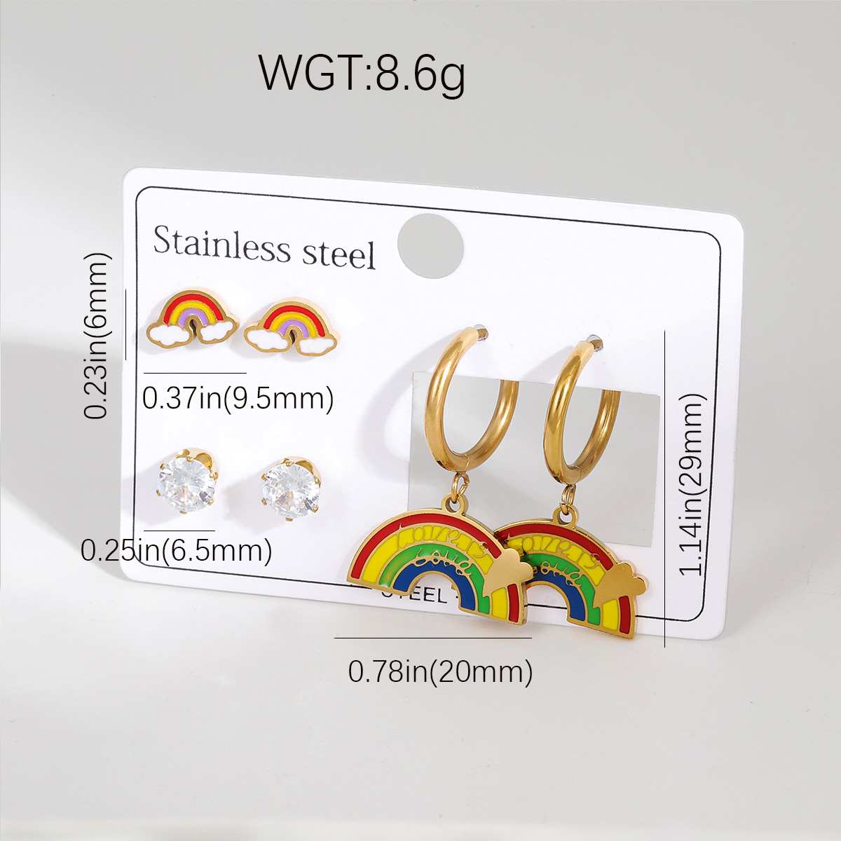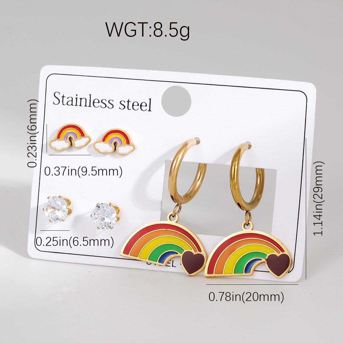 clou d'oreille en acier inoxydable avec stras, Acier inoxydable 304, Placage, trois pièces & styles différents pour le choix & pour femme & émail & avec strass, doré, Vendu par fixé