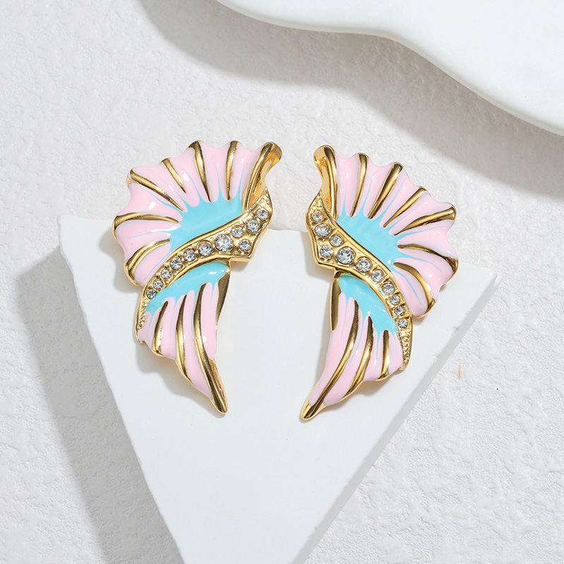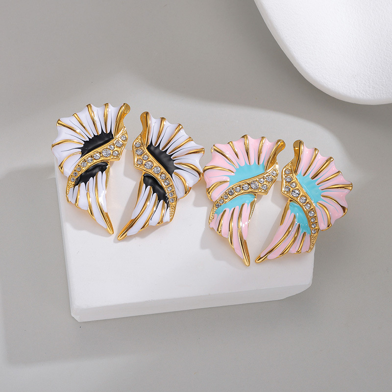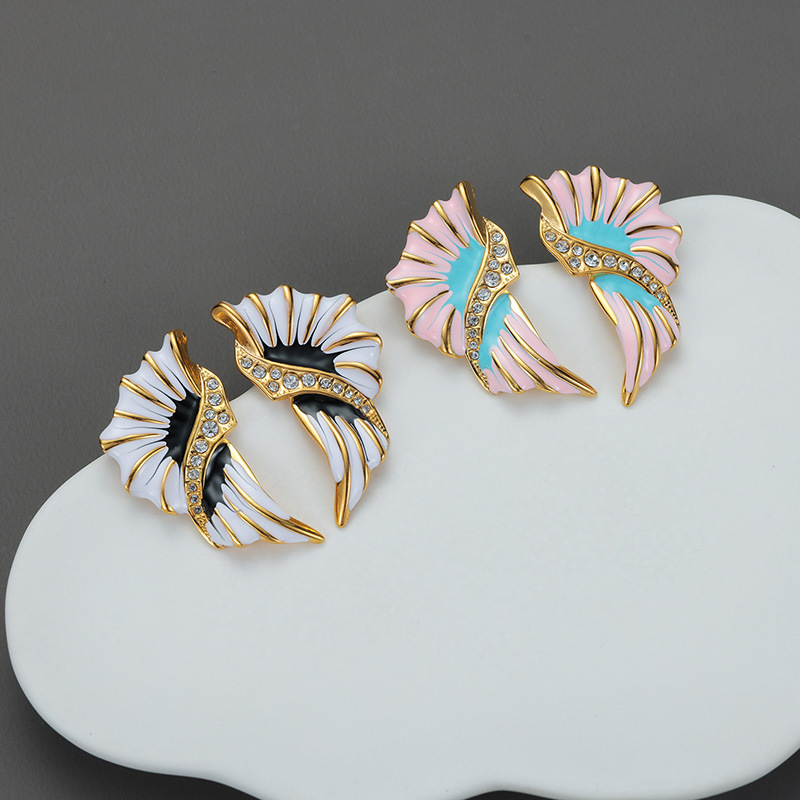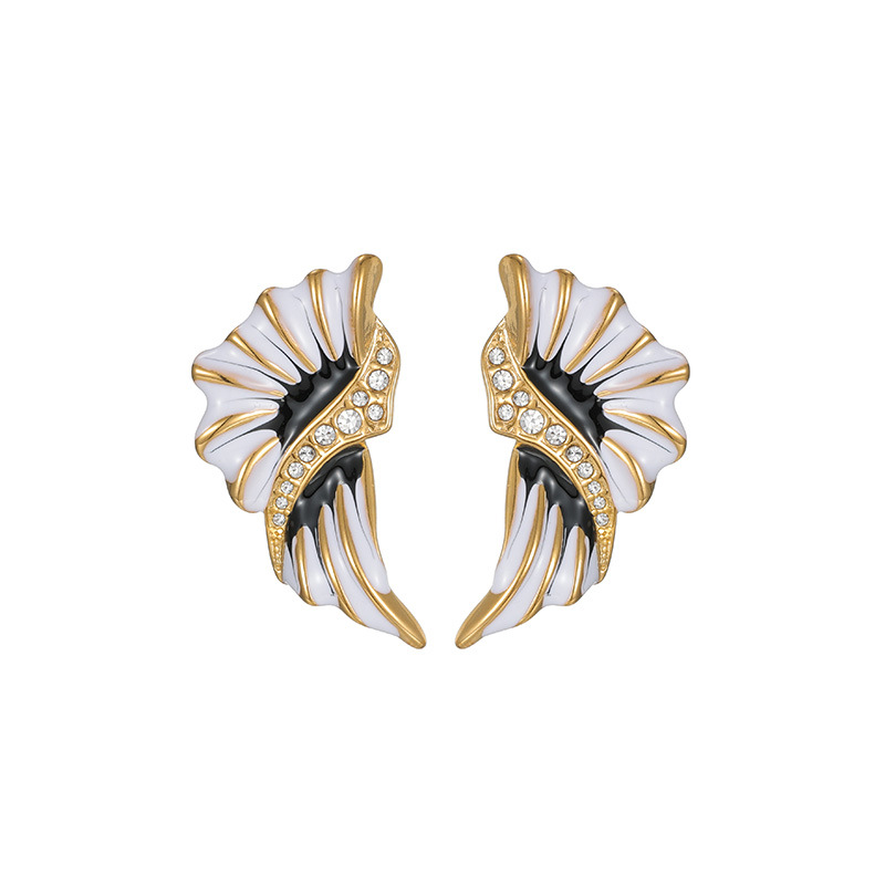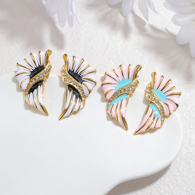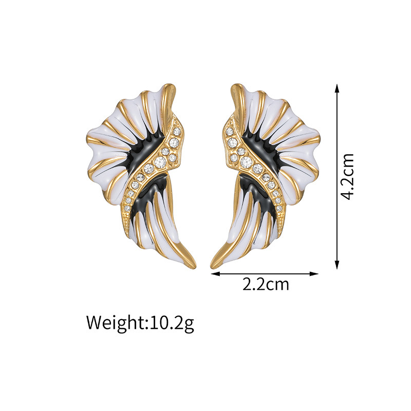 clou d'oreille en acier inoxydable avec stras, Acier inoxydable 304, forme d'aile, Placage de couleur d'or, pour femme & émail & avec strass, plus de couleurs à choisir, Vendu par paire