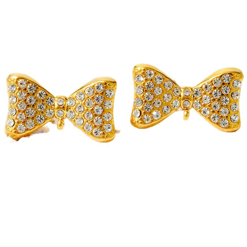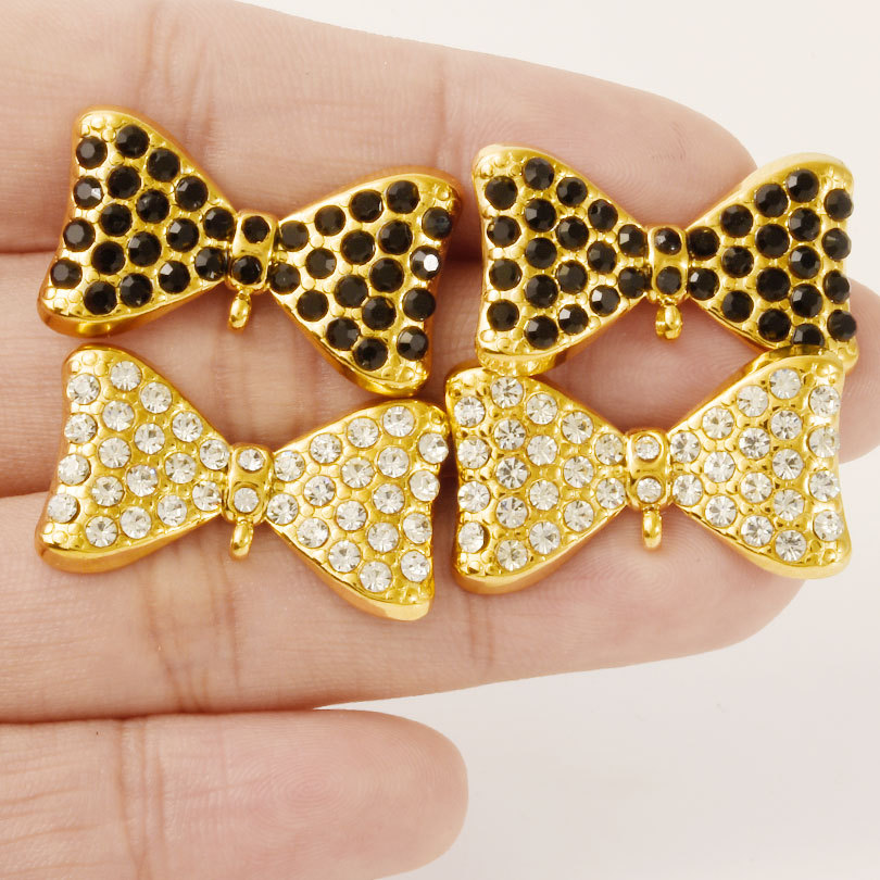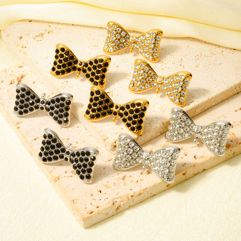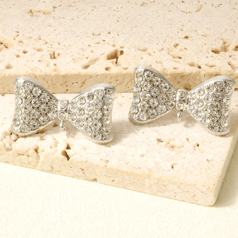 clou d'oreille en acier inoxydable avec stras, Acier inoxydable 304, Noeud papillon, Placage, bijoux de mode & avec strass, plus de couleurs à choisir, 22.8x25.2mm, Vendu par paire