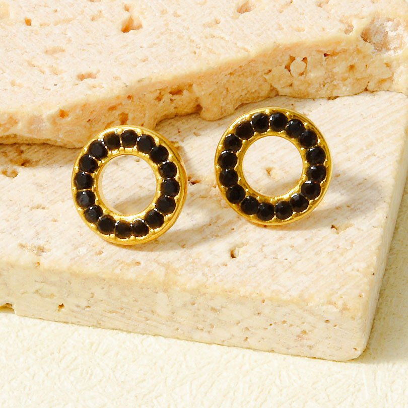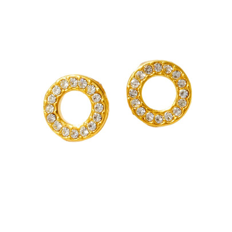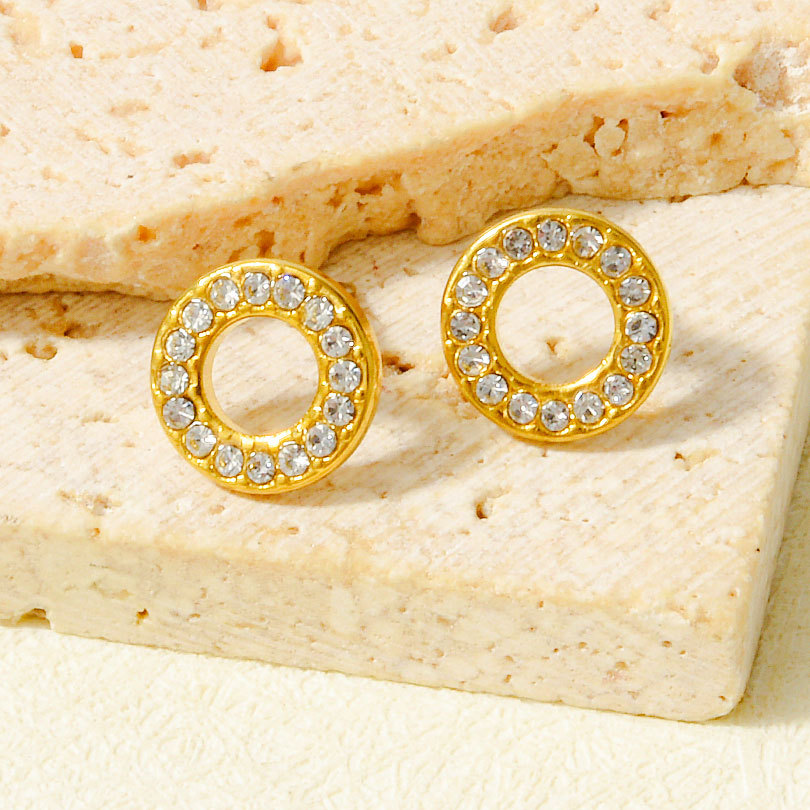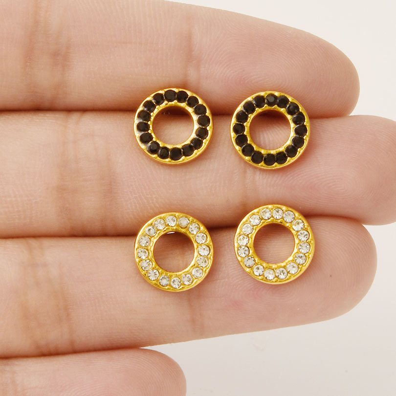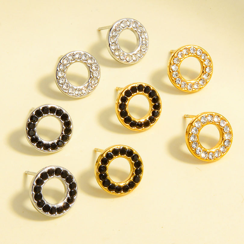 clou d'oreille en acier inoxydable avec stras, Acier inoxydable 304, Rond, Placage, bijoux de mode & avec strass & creux, plus de couleurs à choisir, Vendu par paire