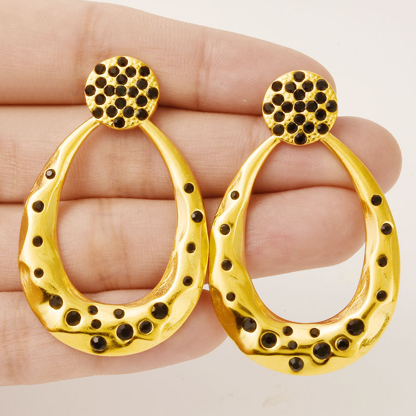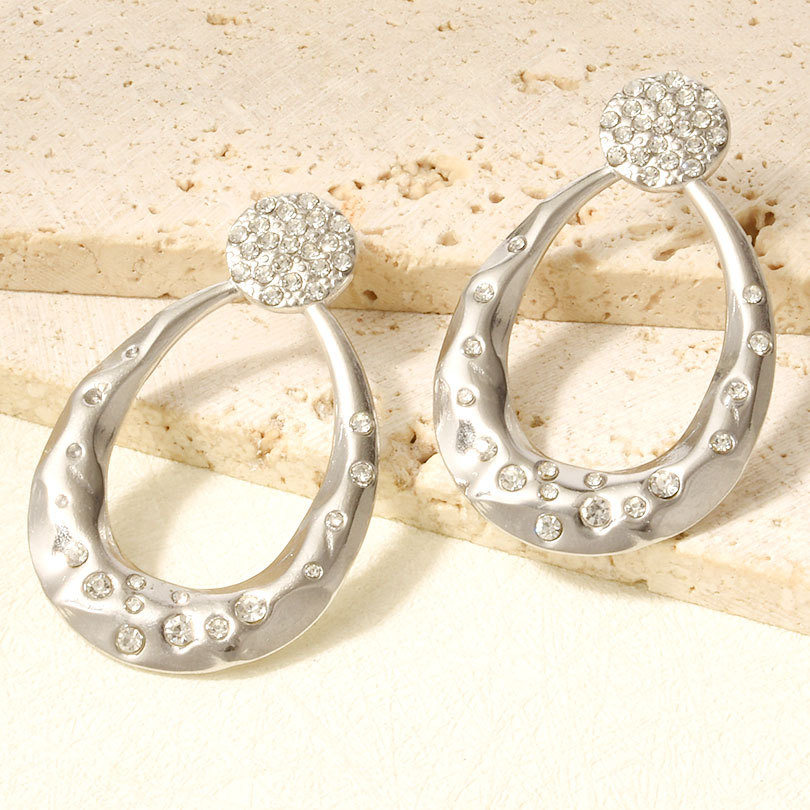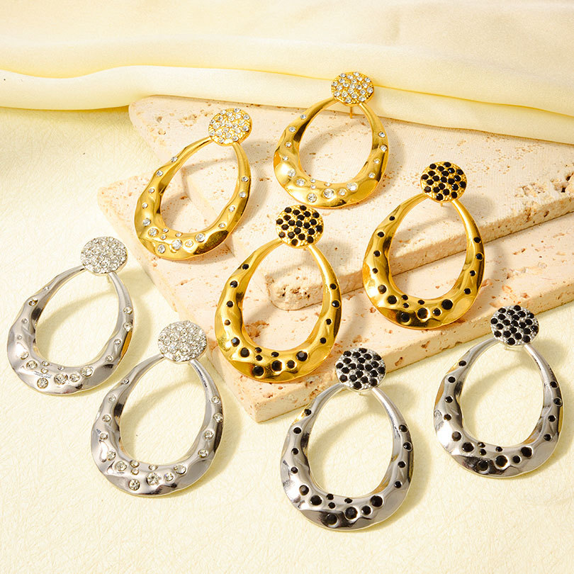 clou d'oreille en acier inoxydable avec stras, Acier inoxydable 304, Placage, bijoux de mode & avec strass & creux, plus de couleurs à choisir, 51.2x32mm, Vendu par paire