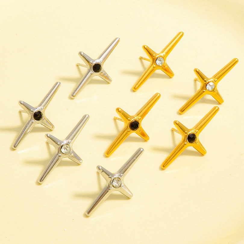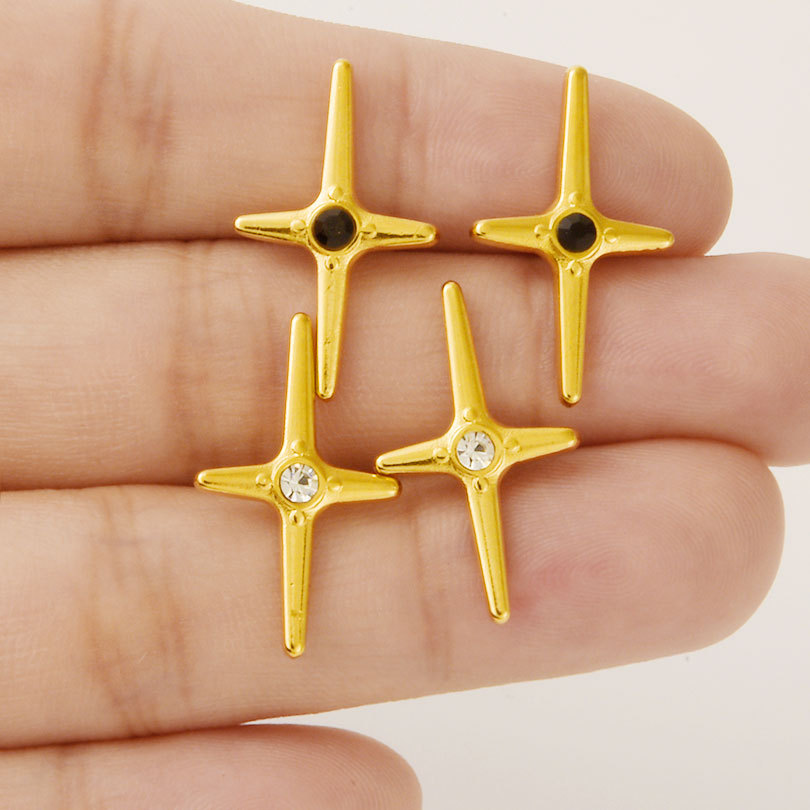 clou d'oreille en acier inoxydable avec stras, Acier inoxydable 304, croix, Placage, bijoux de mode & avec strass, plus de couleurs à choisir, 23.2x14mm, Vendu par paire
