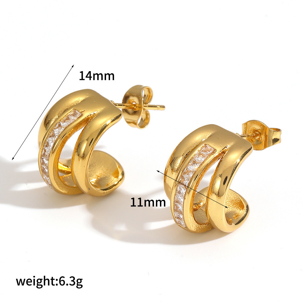 clou d'oreille en acier inoxydable avec stras, Acier inoxydable 304, Placage, bijoux de mode & pavé de micro zircon & avec strass, plus de couleurs à choisir, Vendu par paire