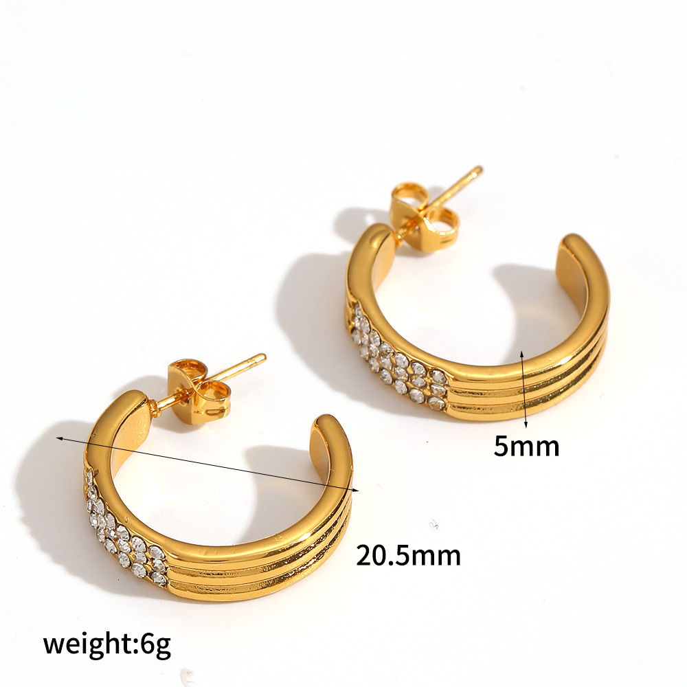 clou d'oreille en acier inoxydable avec stras, Acier inoxydable 304, avec Strass perle de Pave d'argile, Rond, Placage de couleur d'or, 8mm, Vendu par paire