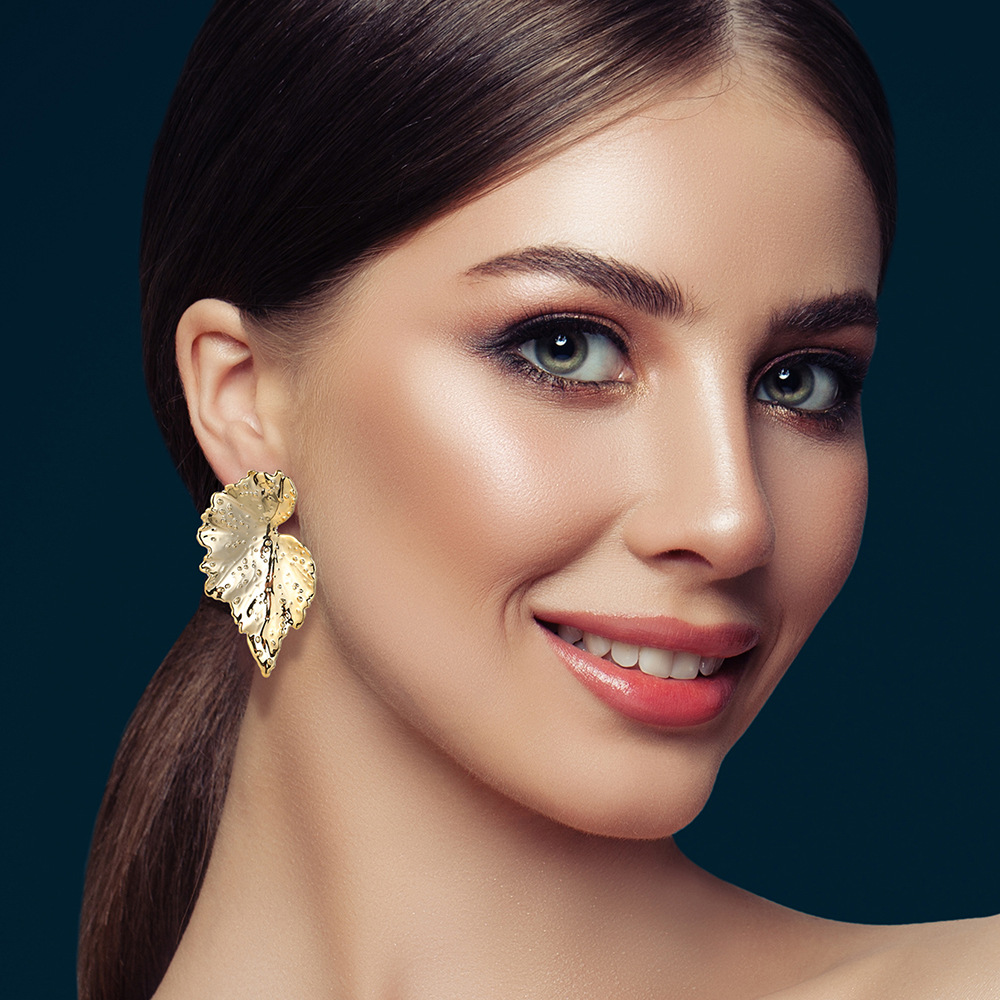 clou d'oreille en alliage zinc, alliage de zinc, acier inoxydable puce boucle d'oreille, branche, Placage de couleur d'or, protéger l'environnement, sans nickel, plomb et cadmium Vendu par paire