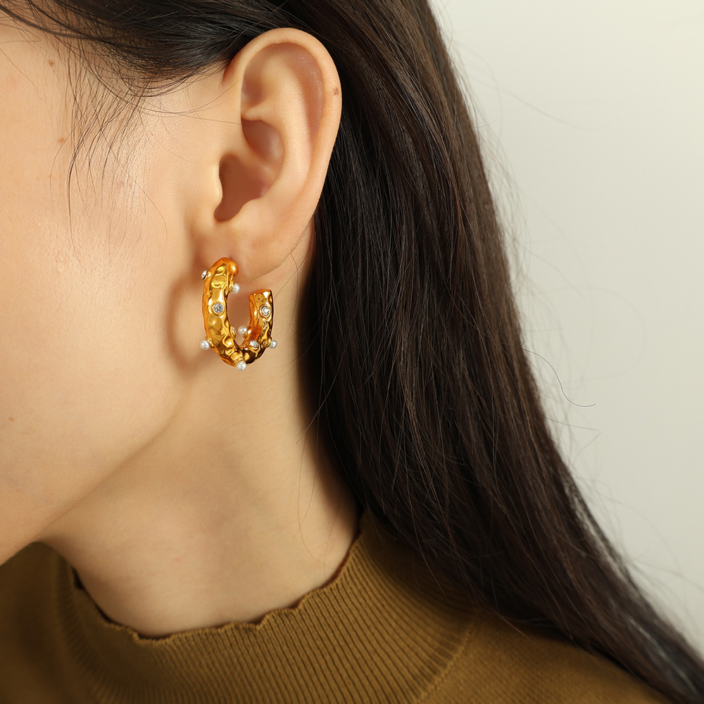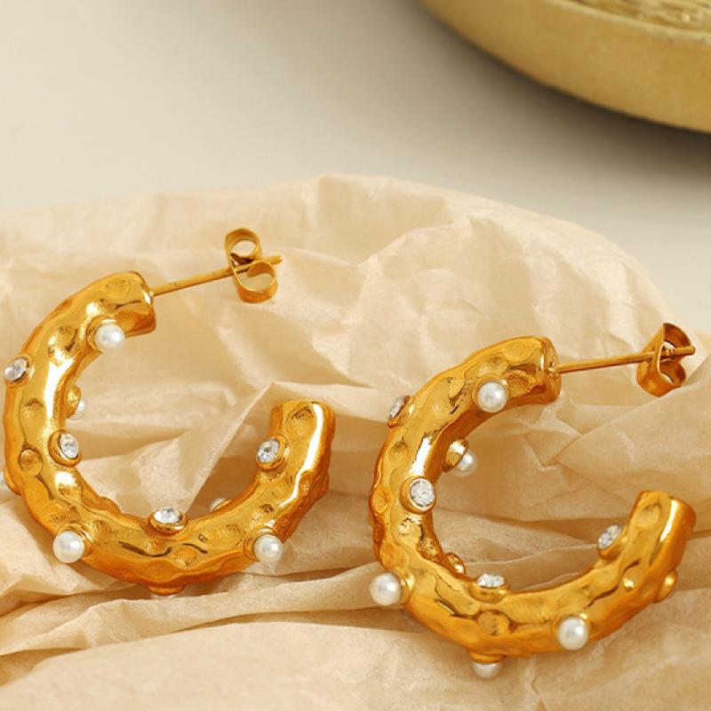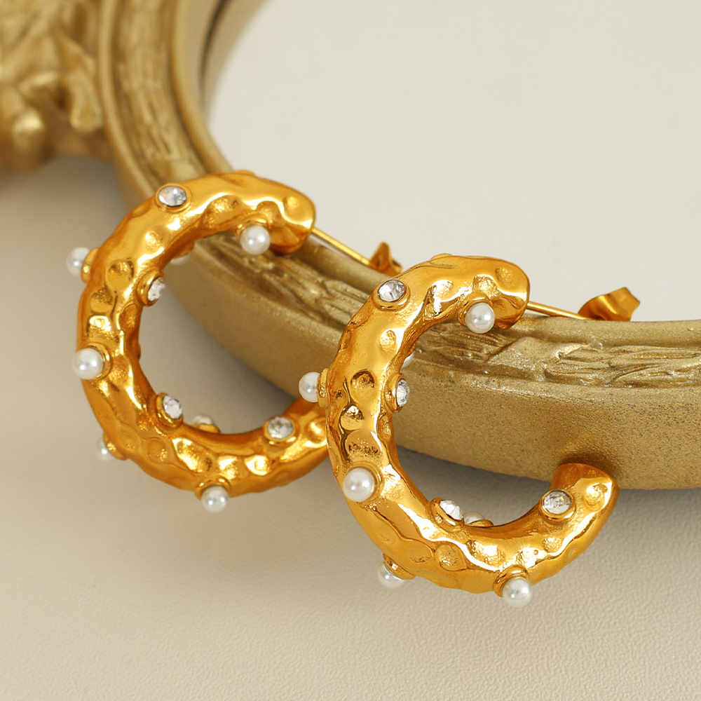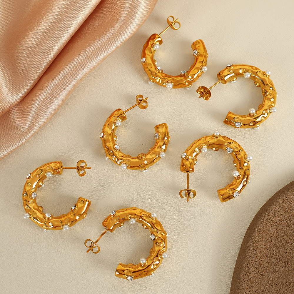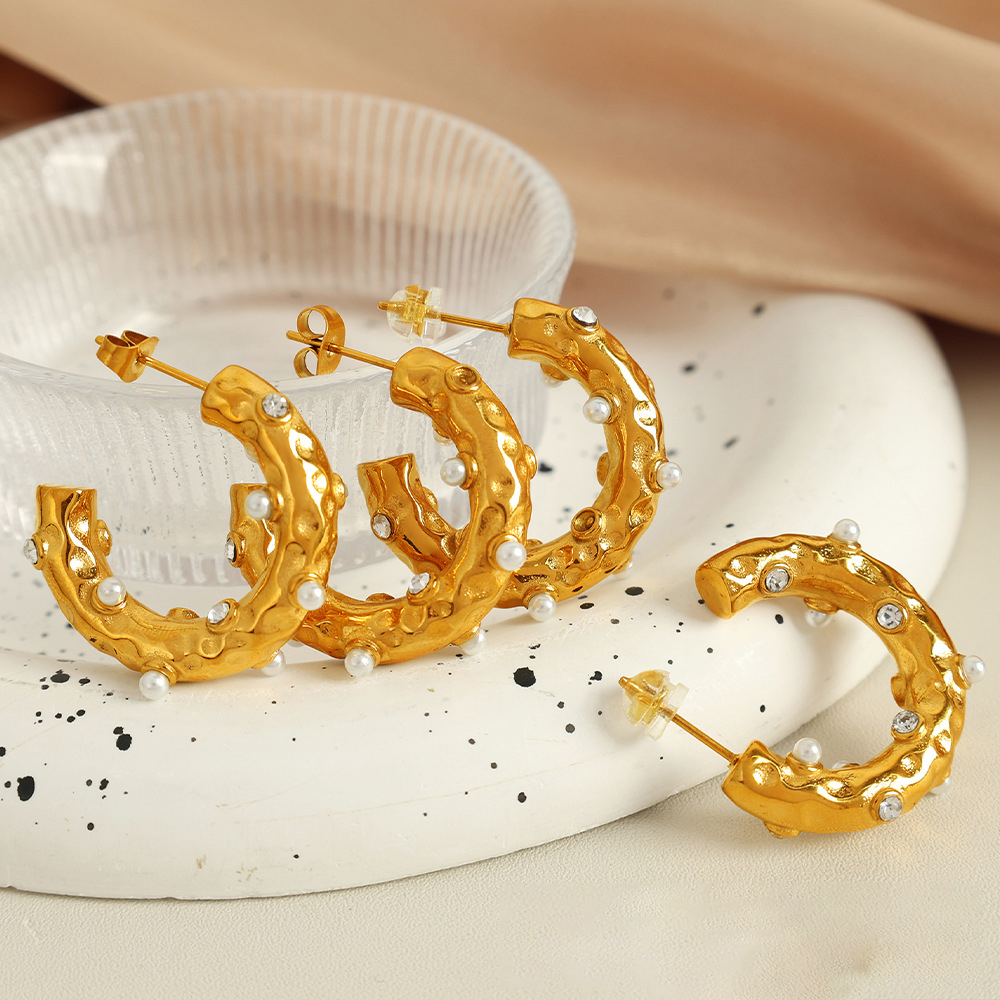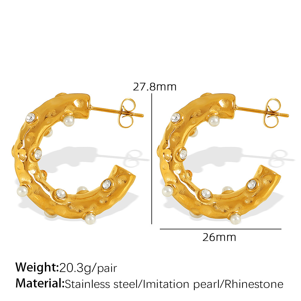 clou d'oreille en acier inoxydable avec stras, Acier inoxydable 304, avec perle de plastique, Plaqué or 18K, bijoux de mode & pour femme & avec strass, Vendu par paire