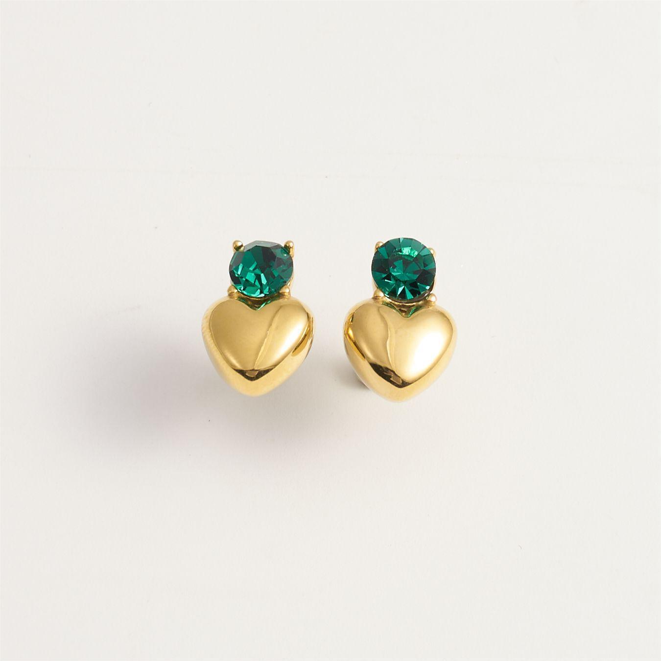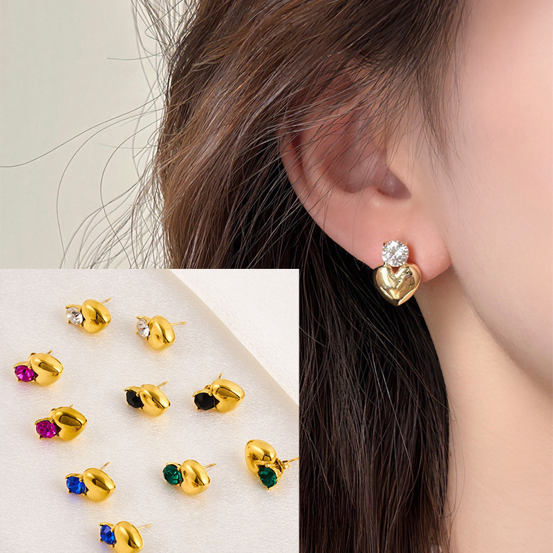 clou d'oreille en acier inoxydable avec stras, avec argile, acier inoxydable puce boucle d'oreille, coeur, avec strass, protéger l'environnement, sans nickel, plomb et cadmium 0.7mm, Vendu par paire