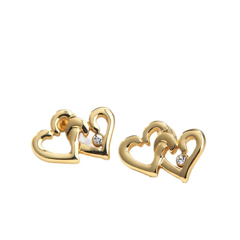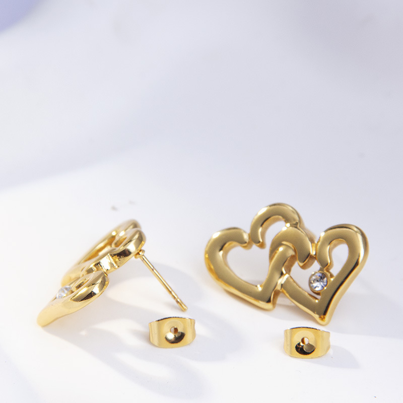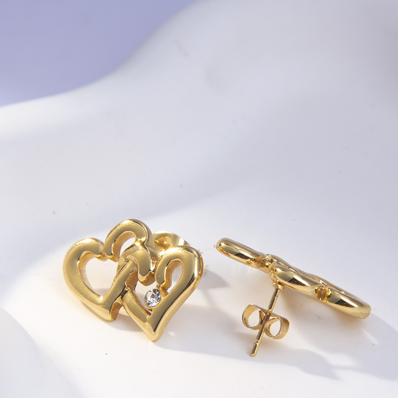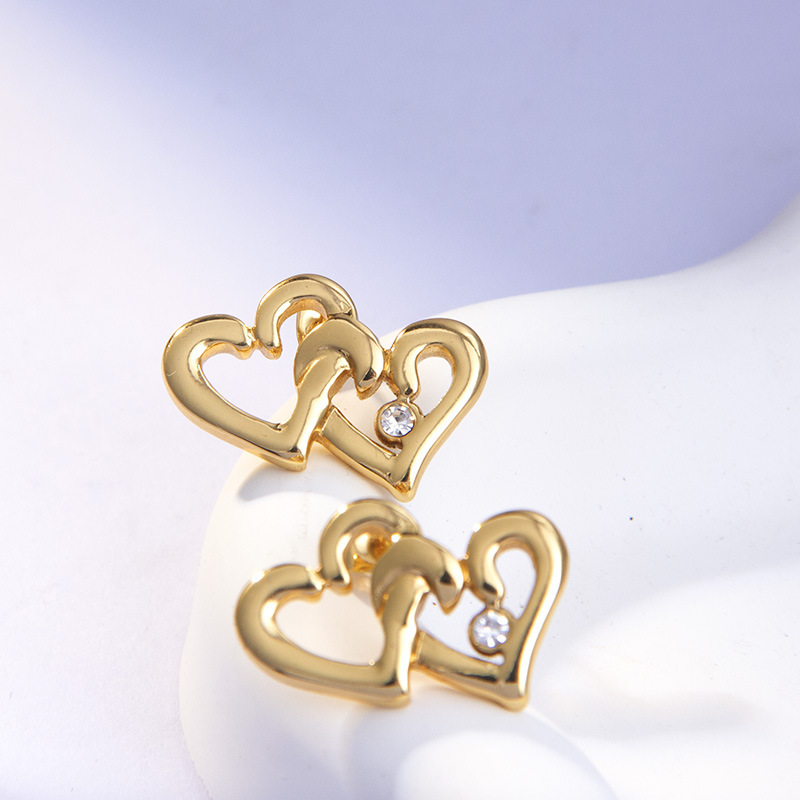 clou d'oreille en acier inoxydable avec stras, Acier inoxydable 304, coeur, Plaqué or 18K, pour femme & avec strass & creux, 25x19mm, Vendu par PC