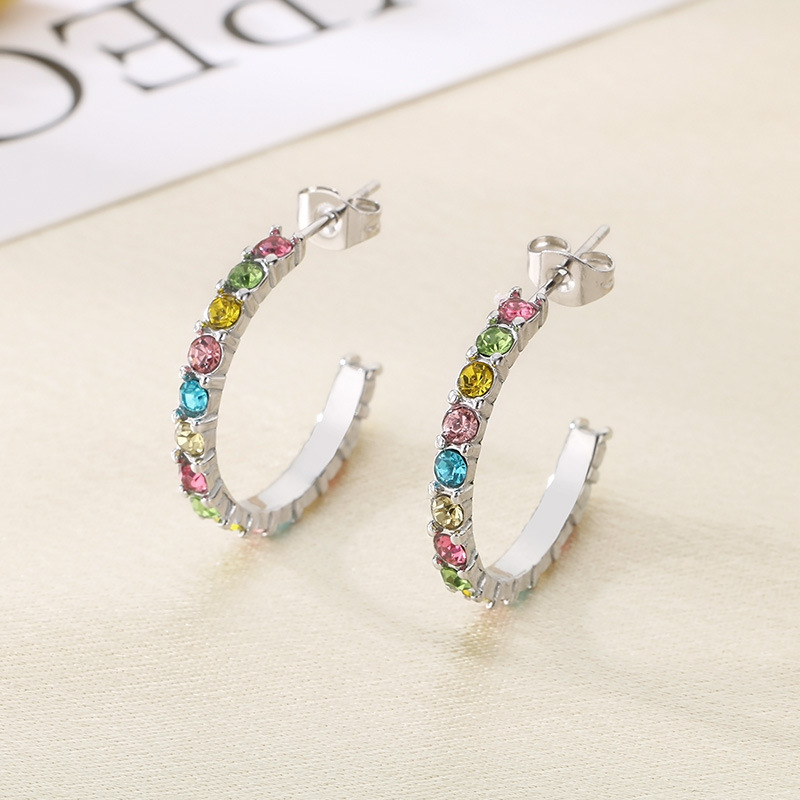 clou d'oreille en acier inoxydable avec stras, dauphin, avec strass, couleur originale Vendu par paire
