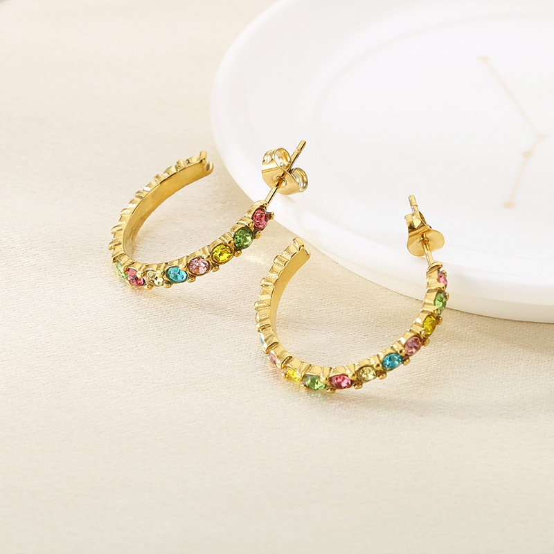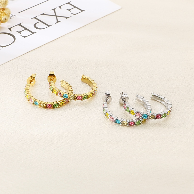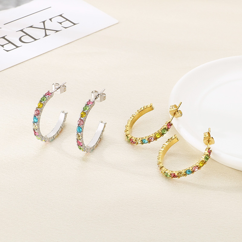 clou d'oreille en acier inoxydable avec stras, Acier inoxydable 304, Lettre C, Placage ionique sous vide, bijoux de mode & pour femme & avec strass, plus de couleurs à choisir, 23x3mm, Vendu par paire