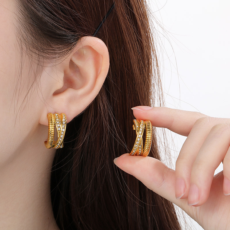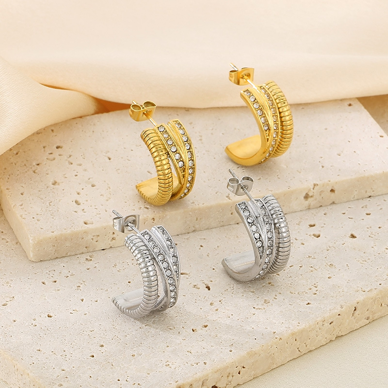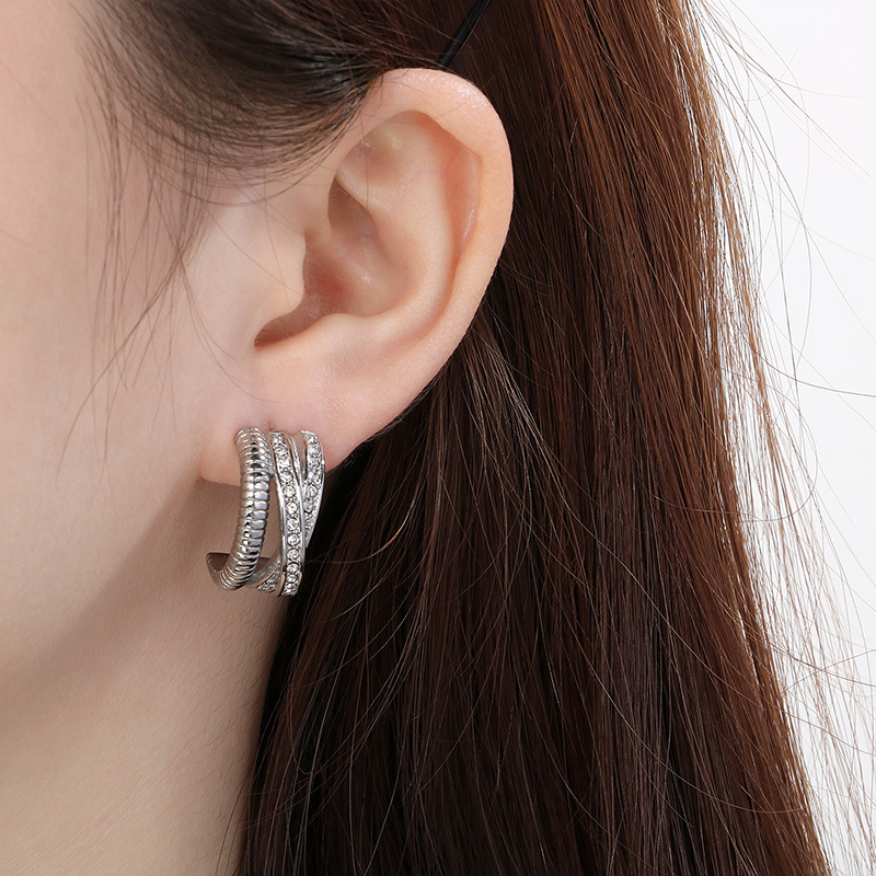 clou d'oreille en acier inoxydable avec stras, cadre, avec strass, plus de couleurs à choisir Vendu par PC