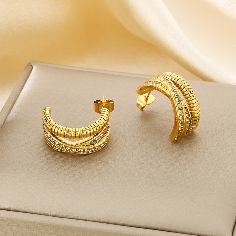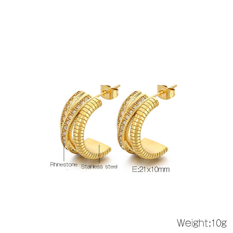 clou d'oreille en acier inoxydable avec stras, Acier inoxydable 304, Placage ionique sous vide, bijoux de mode & pour femme & avec strass, plus de couleurs à choisir, 21x10mm, Vendu par paire