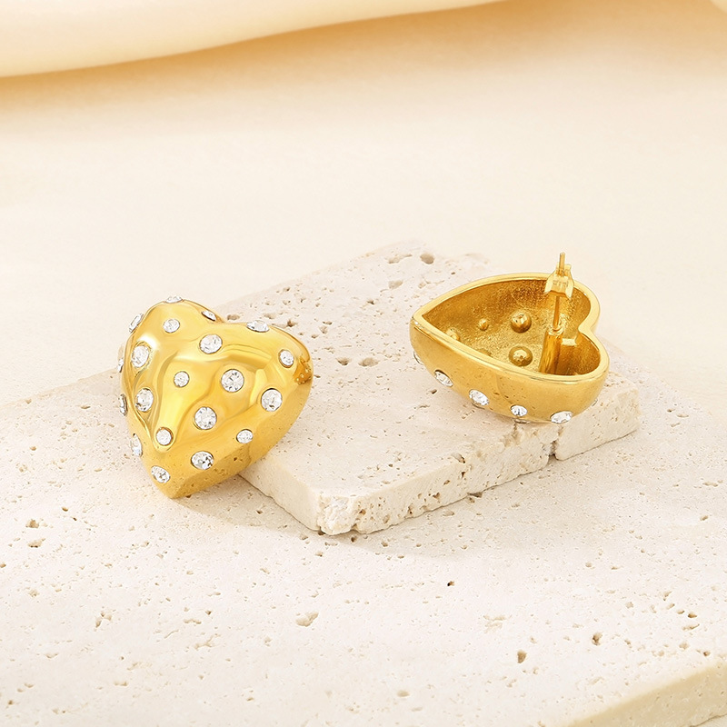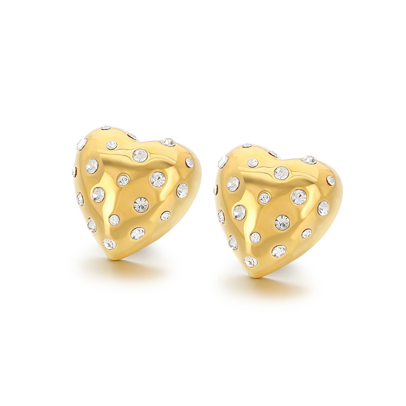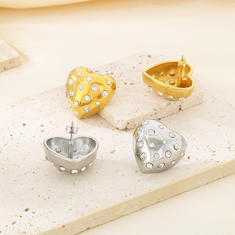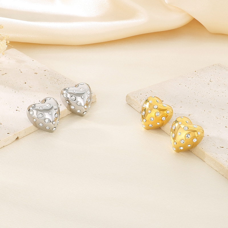 clou d'oreille en acier inoxydable avec stras, Acier inoxydable 304, coeur, Placage, bijoux de mode & avec strass, plus de couleurs à choisir, Vendu par paire