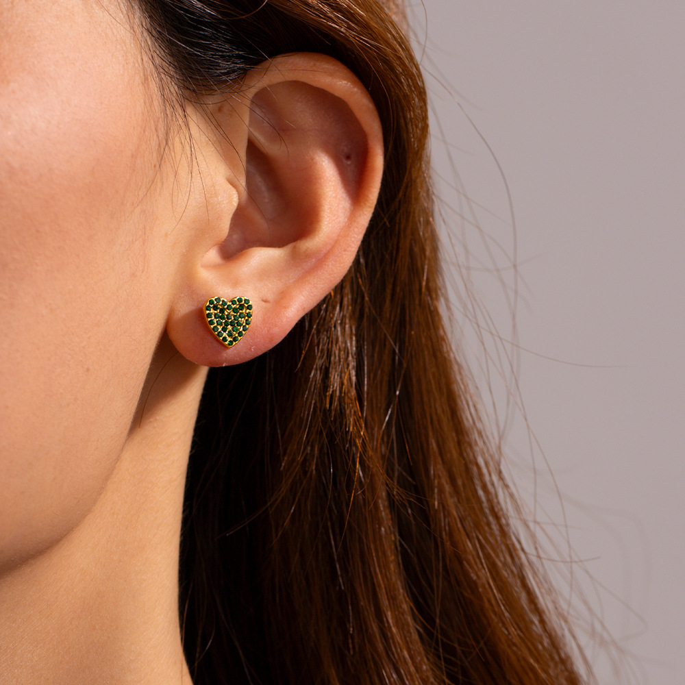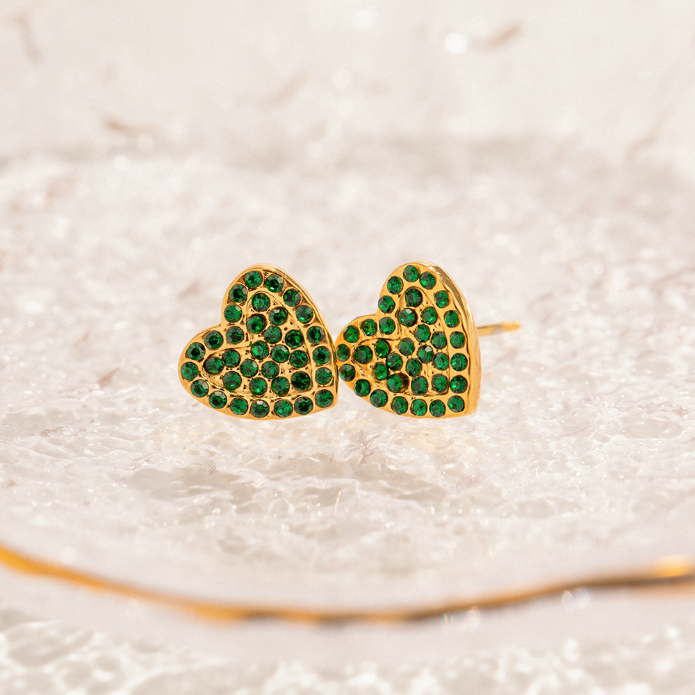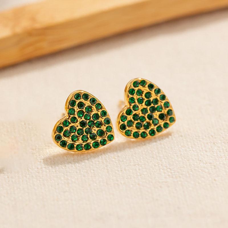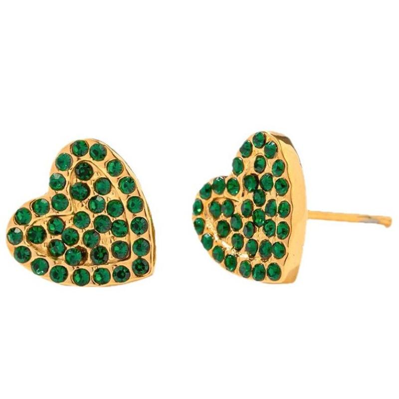 clou d'oreille en acier inoxydable avec stras, Acier inoxydable 304, coeur, Plaqué or 18K, bijoux de mode & pour femme & avec strass, Vendu par paire