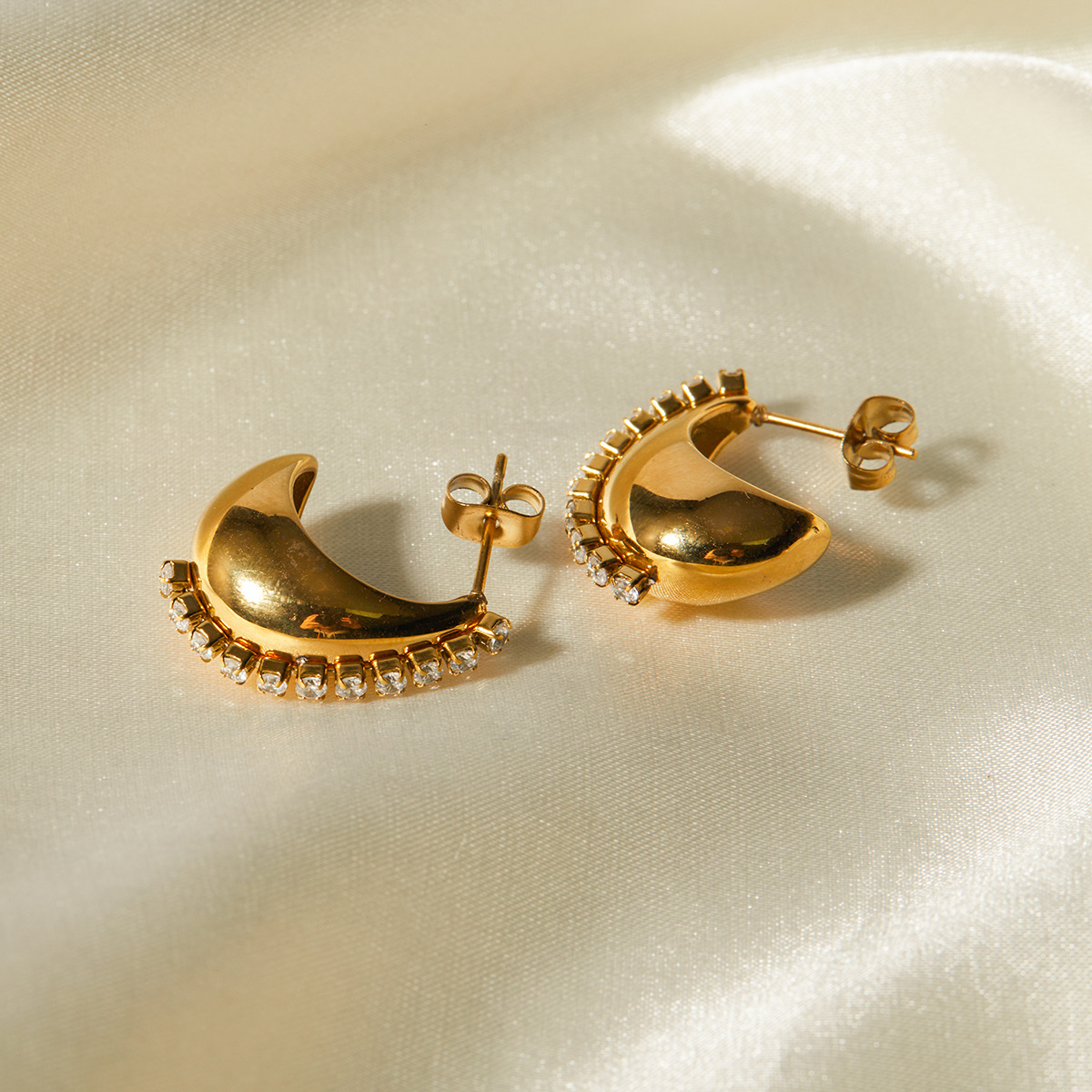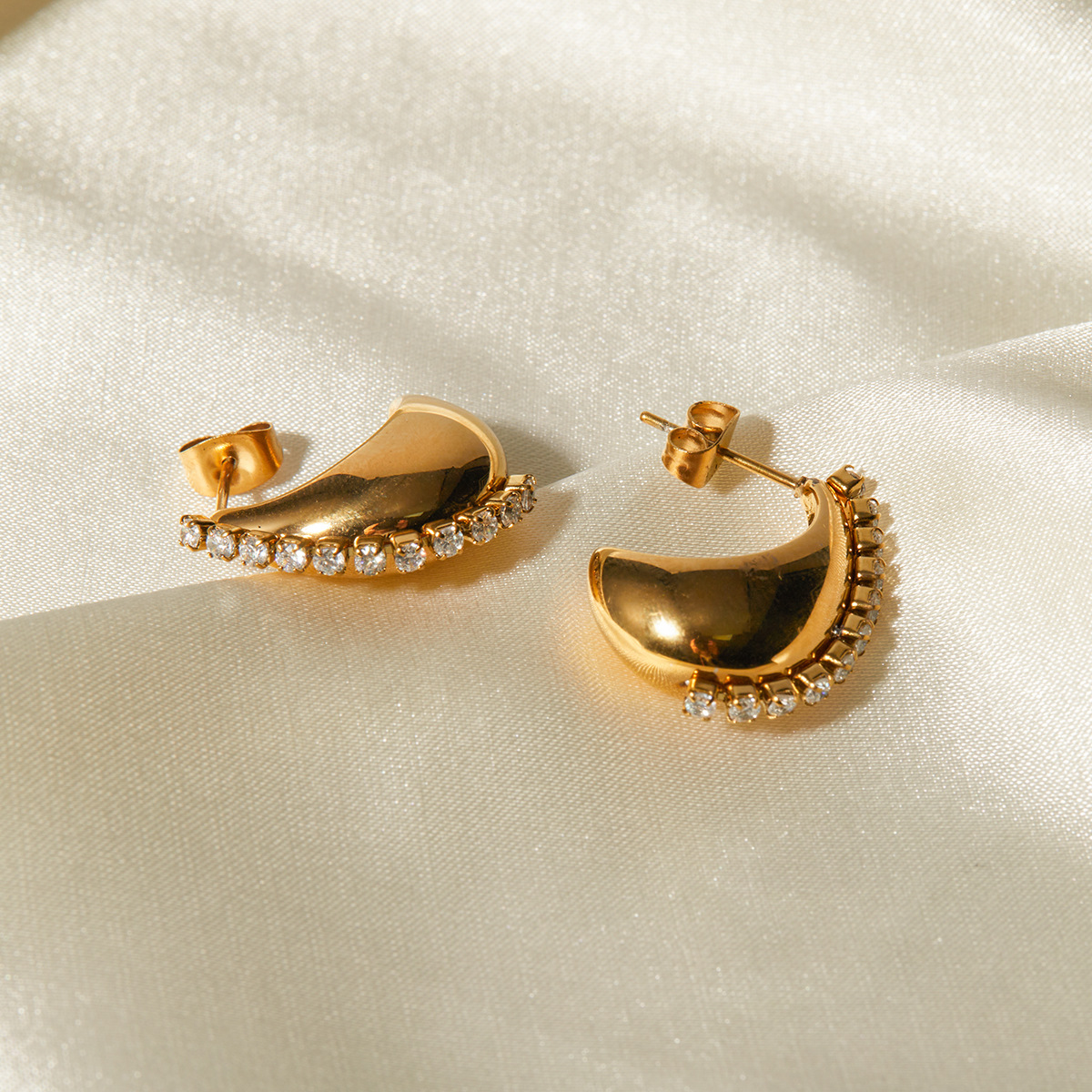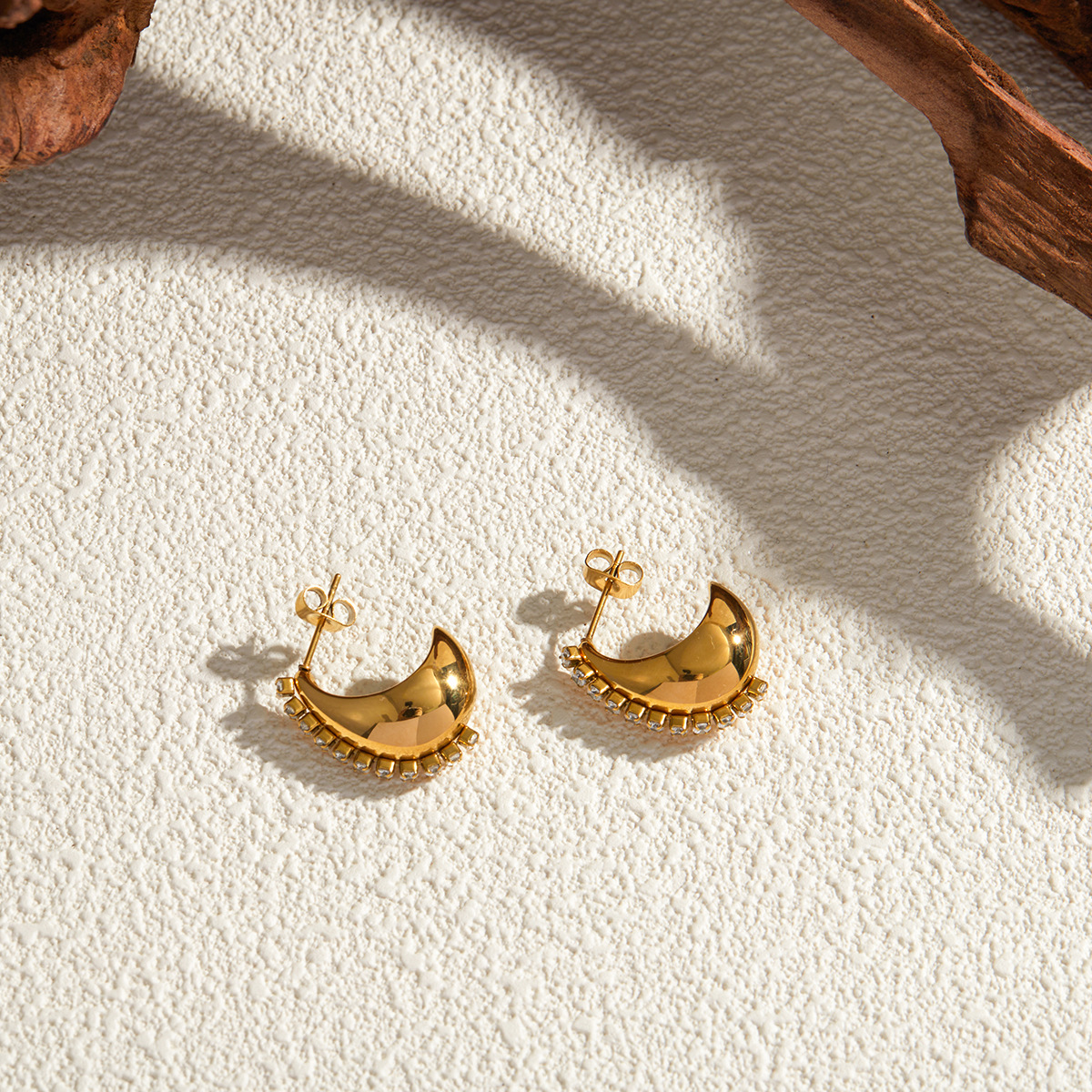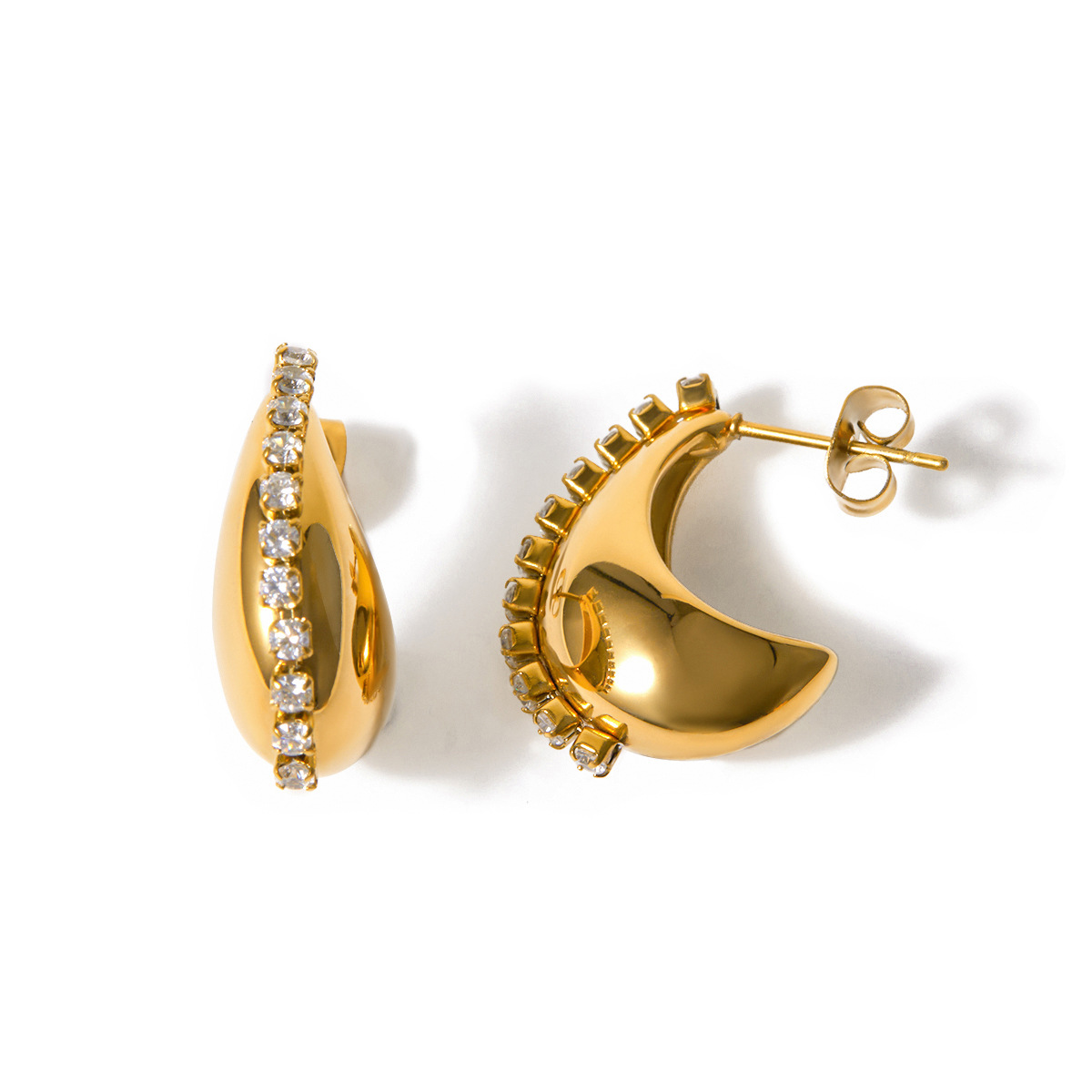 clou d'oreille en acier inoxydable avec stras, Acier inoxydable 304, Plaqué or 18K, bijoux de mode & pour femme & avec strass, Vendu par paire