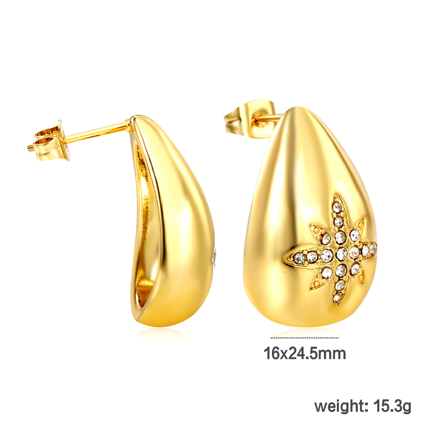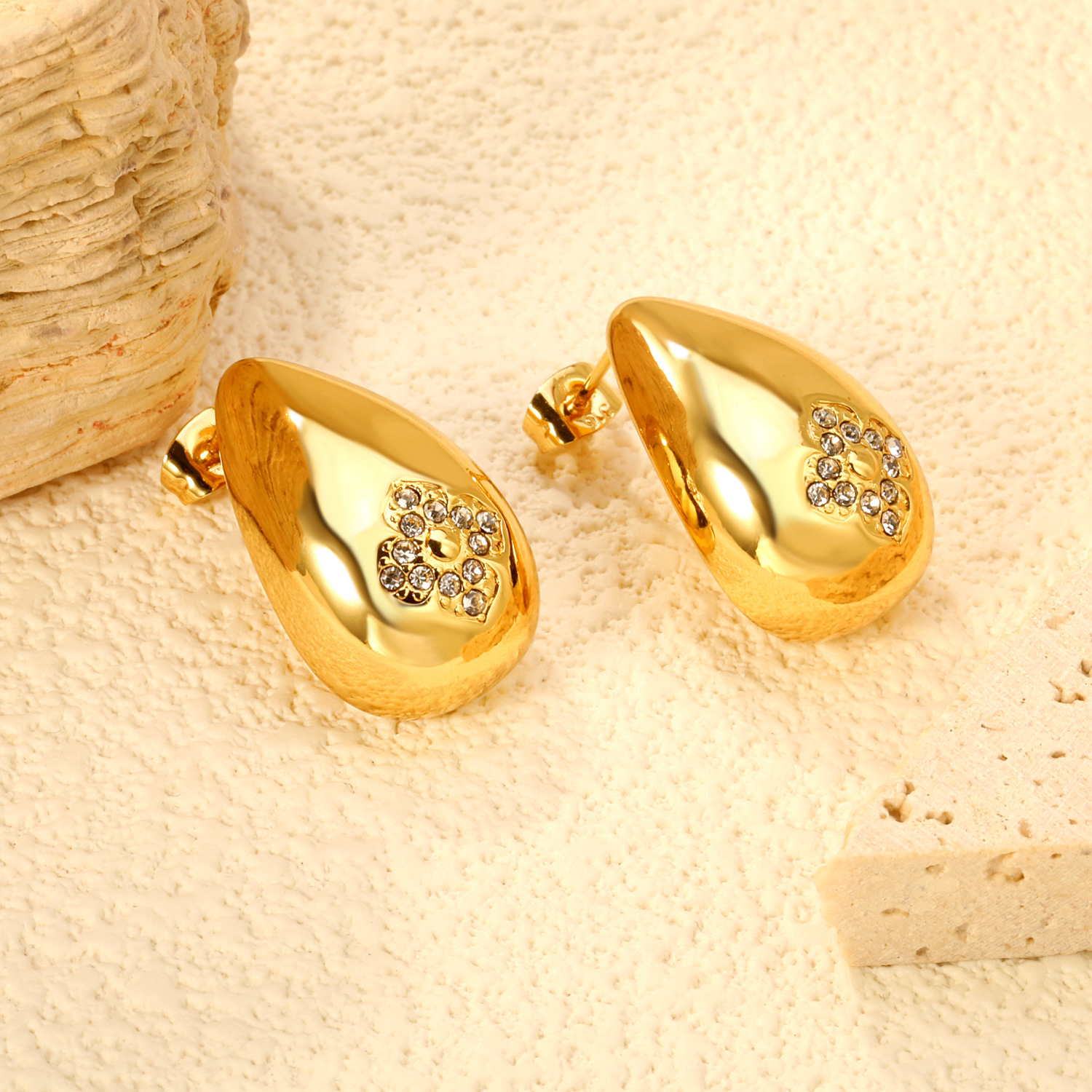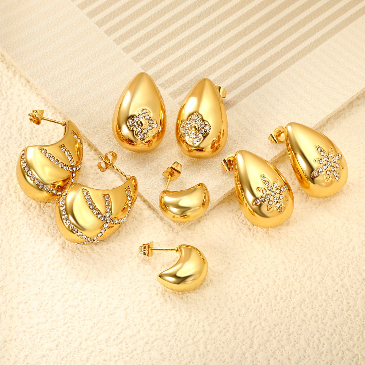 clou d'oreille en acier inoxydable avec stras, Acier inoxydable 304, larme, Plaqué or 18K, modèles différents pour le choix & pour femme & avec strass, Vendu par paire
