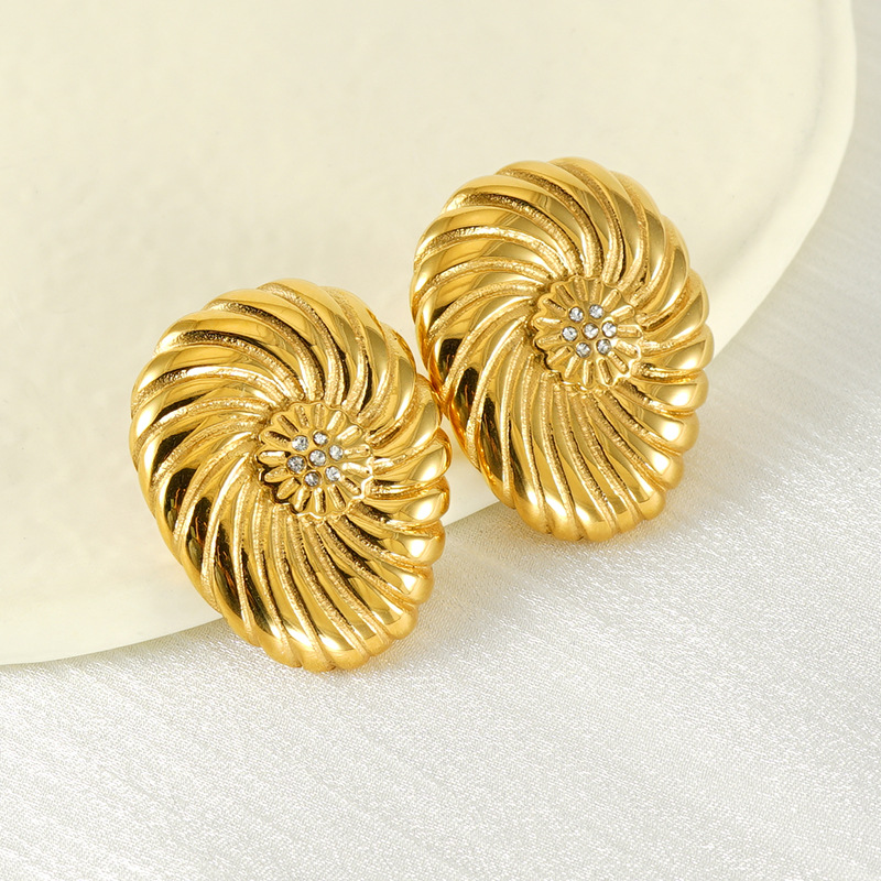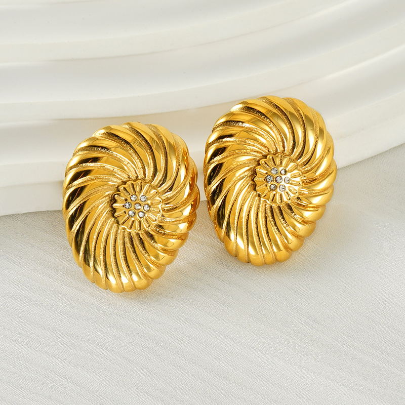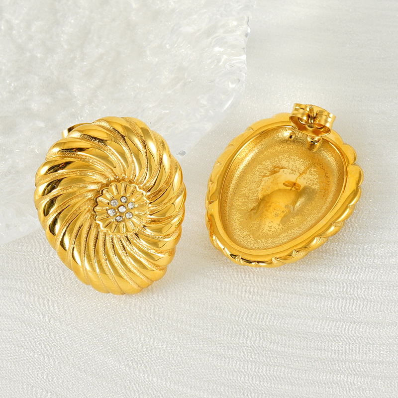 clou d'oreille en acier inoxydable avec stras, tortue, Placage de couleur d'or, avec strass Vendu par paire