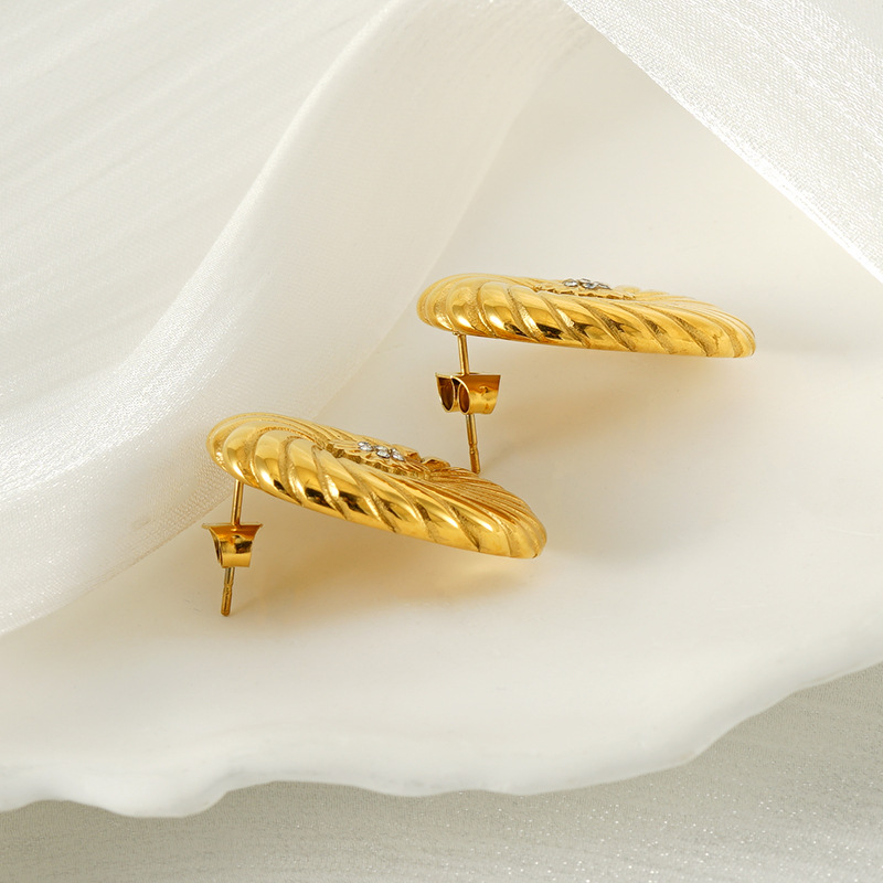 clou d'oreille en acier inoxydable avec stras, Acier inoxydable 304, Plaqué or 18K, bijoux de mode & pour femme & avec strass, Vendu par paire