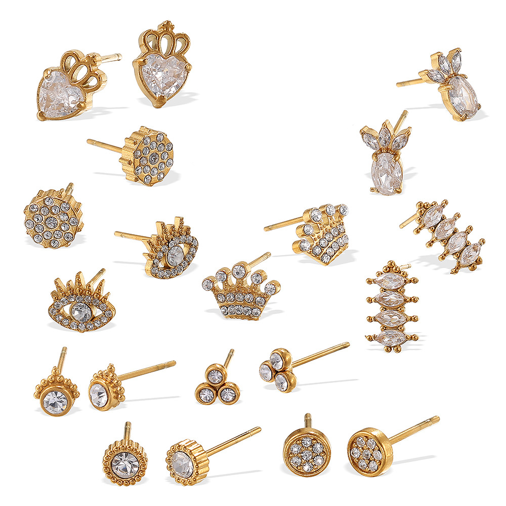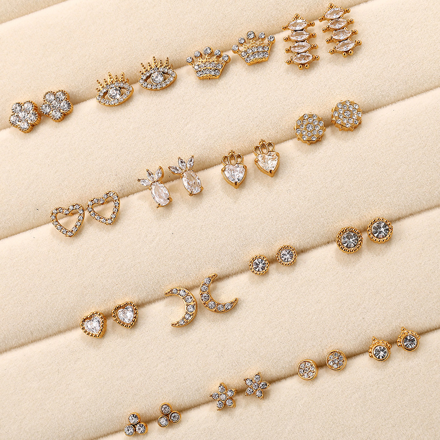 clou d'oreille en acier inoxydable avec stras, Acier inoxydable 304, Placage, styles différents pour le choix & pour femme & avec strass, doré, Vendu par PC