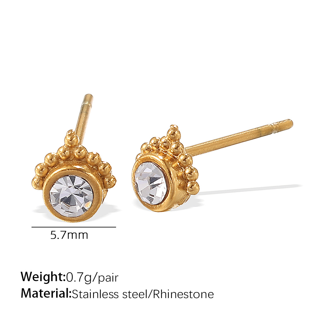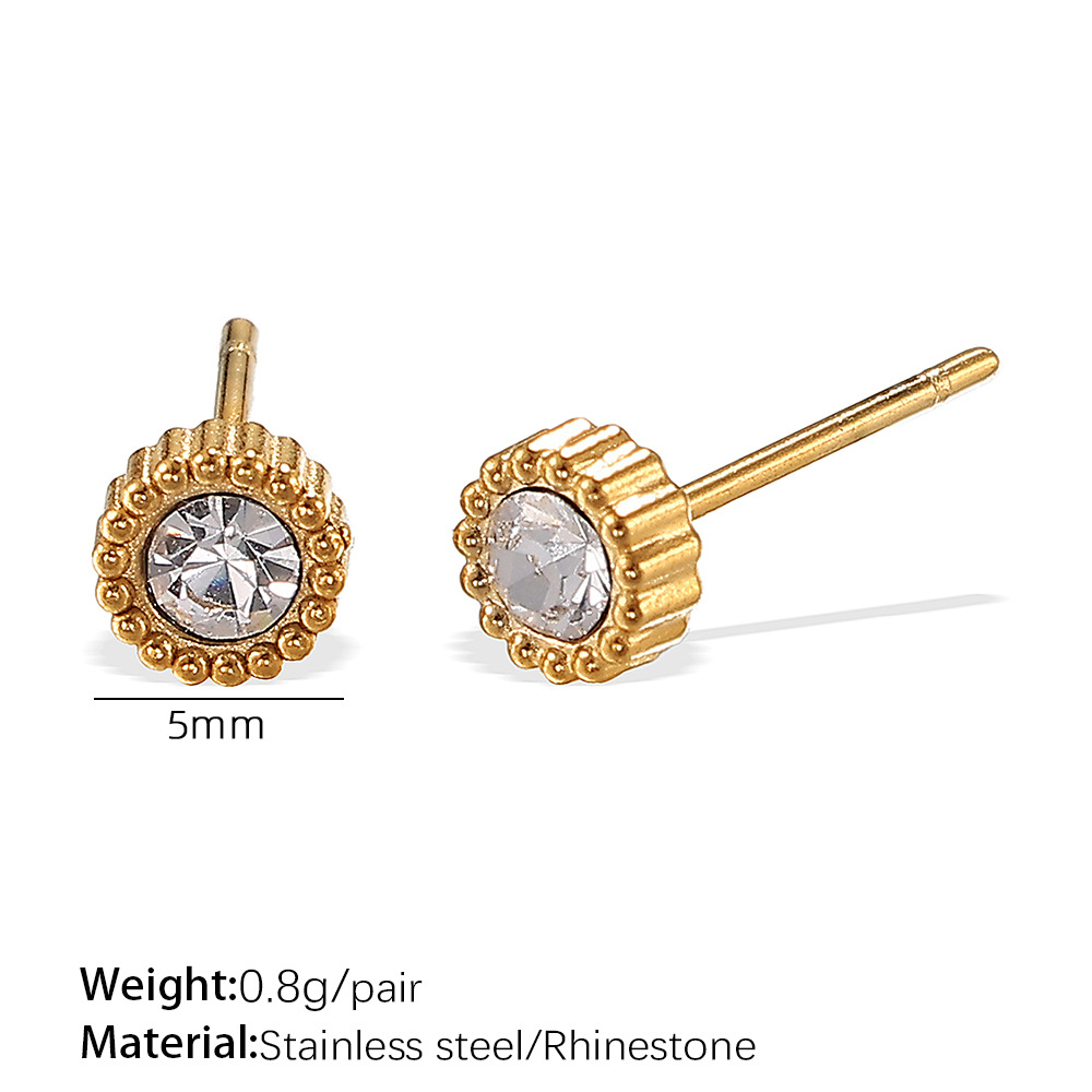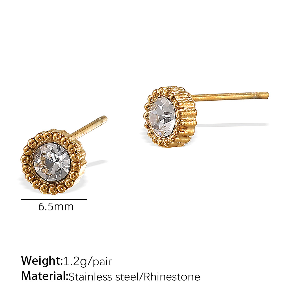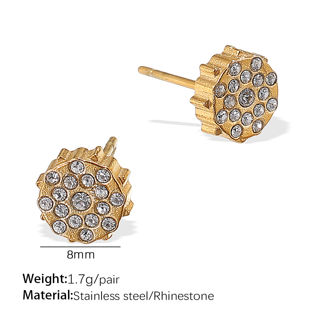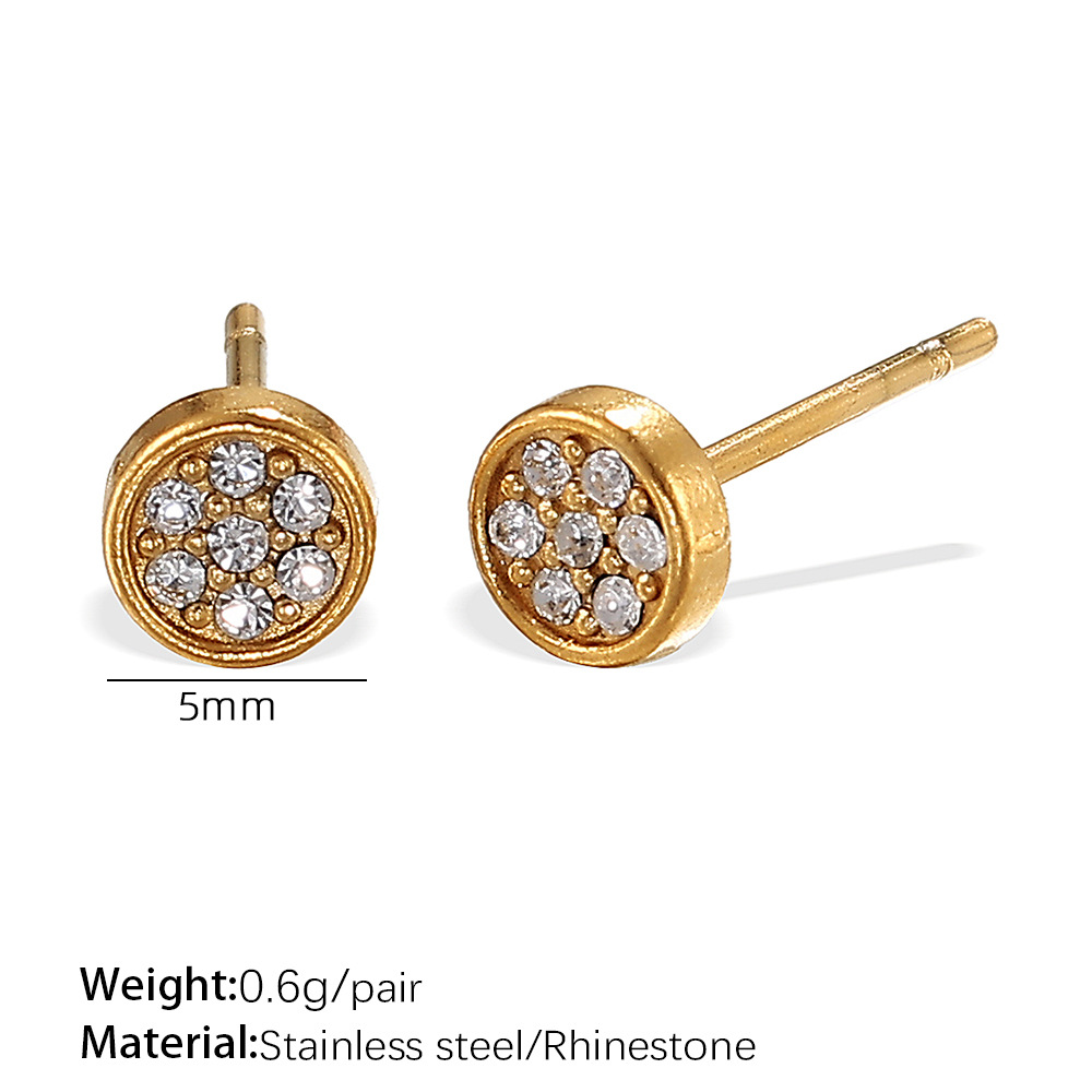 clou d'oreille en acier inoxydable avec stras, Acier inoxydable 304, avec Strass perle de Pave d'argile, Rond, Placage de couleur d'or, 8mm, Vendu par paire