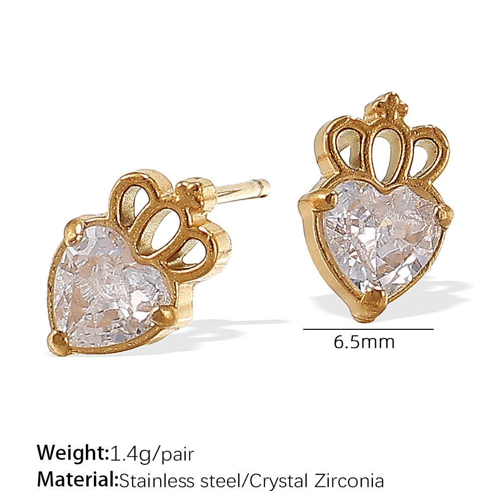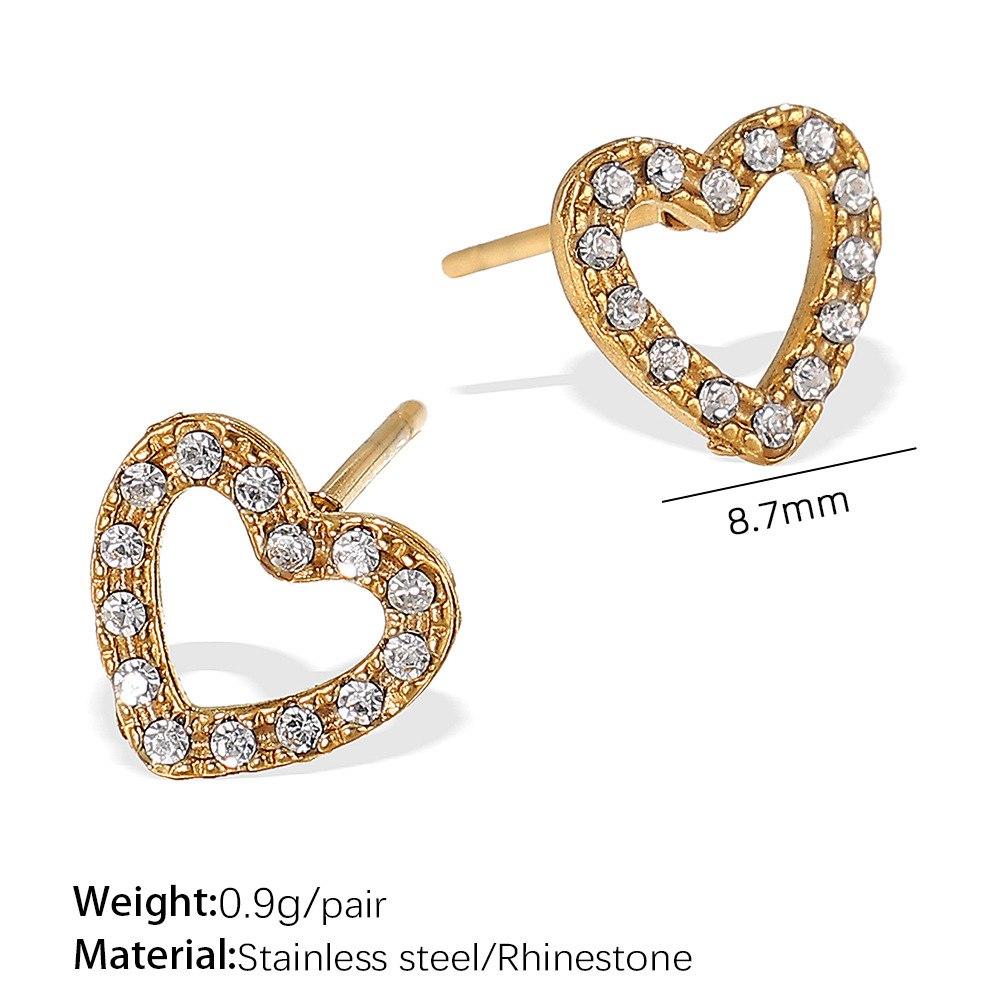 clou d'oreille en acier inoxydable avec stras, avec argile, acier inoxydable puce boucle d'oreille, coeur, avec strass, protéger l'environnement, sans nickel, plomb et cadmium 0.7mm, Vendu par paire