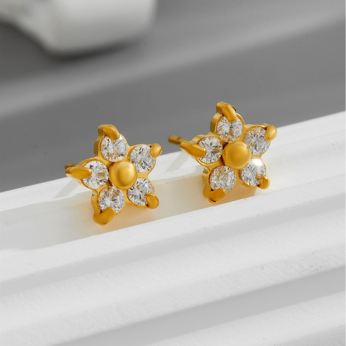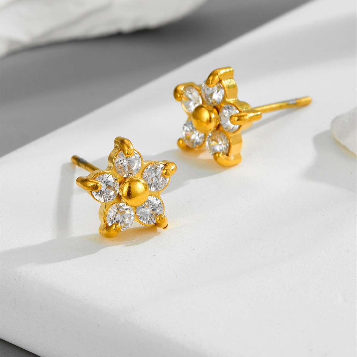clou d'oreille en acier inoxydable avec stras, Acier inoxydable 304, fleur, Placage de couleur d'or, bijoux de mode & pour femme & avec strass, plus de couleurs à choisir, 10x10x10mm, Vendu par paire