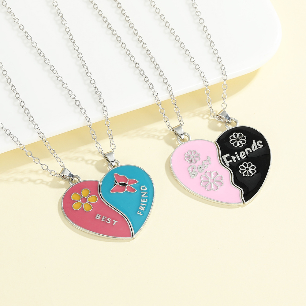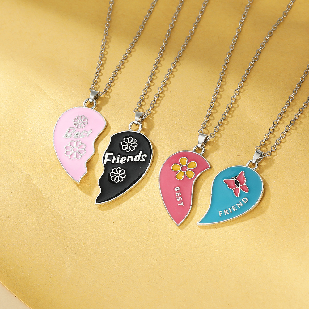 alliage de zinc Collier d'amitié puzzle, avec chaîne de fer, coeur, meilleur ami de mot, Plaqué de couleur d'argent, chaîne à billes & émail, sans plomb et cadmium Environ 17.7 pouce, Vendu par paire