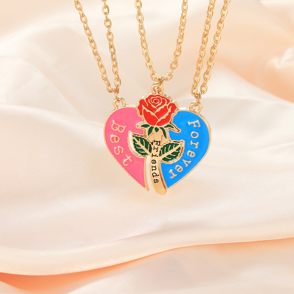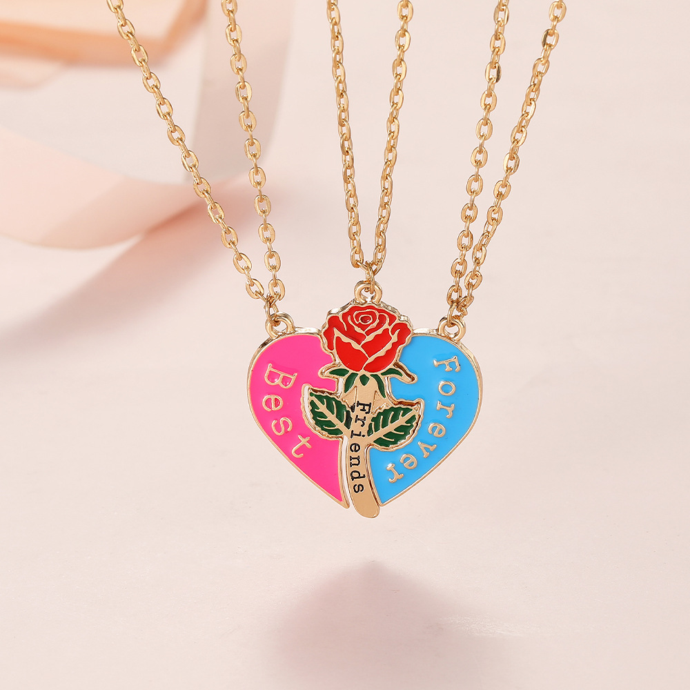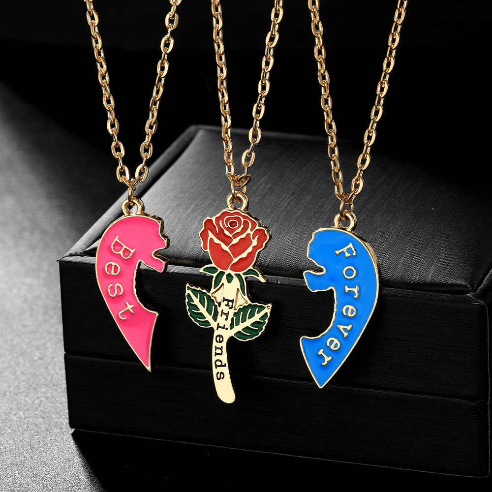 alliage de zinc Collier d'amitié puzzle, avec chaîne de fer, coeur, meilleur ami de mot, Plaqué de couleur d'argent, chaîne à billes & émail, sans plomb et cadmium Environ 17.7 pouce, Vendu par paire