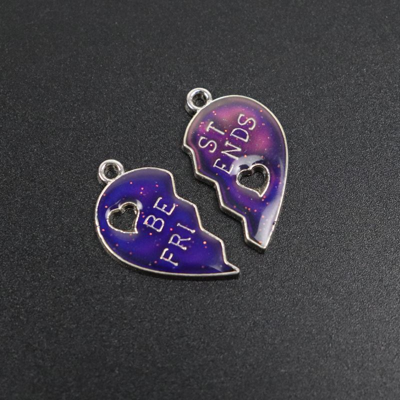 collier d'humeur en émail, alliage de zinc, coeur, Placage de couleur argentée, Mood émail & DIY, plus de couleurs à choisir, 25x30mm, Longueur:50 cm, Vendu par paire