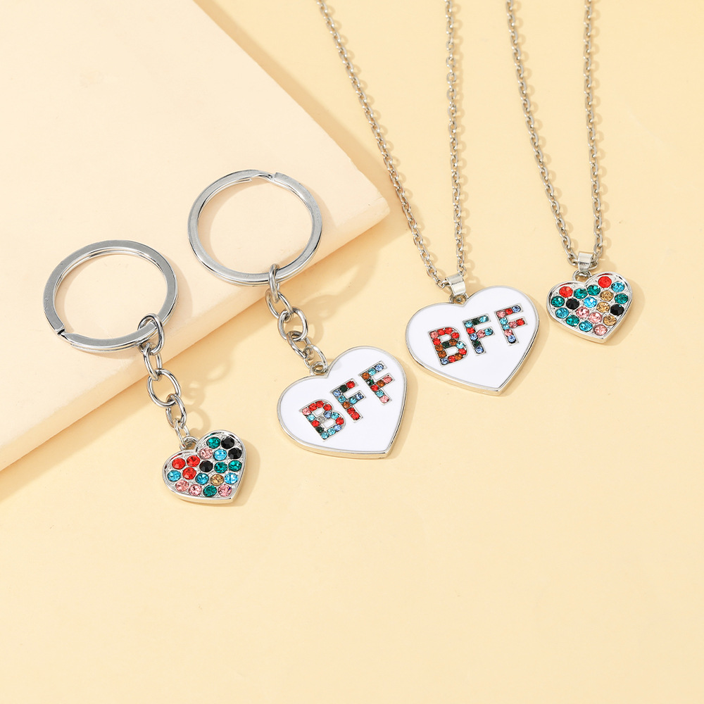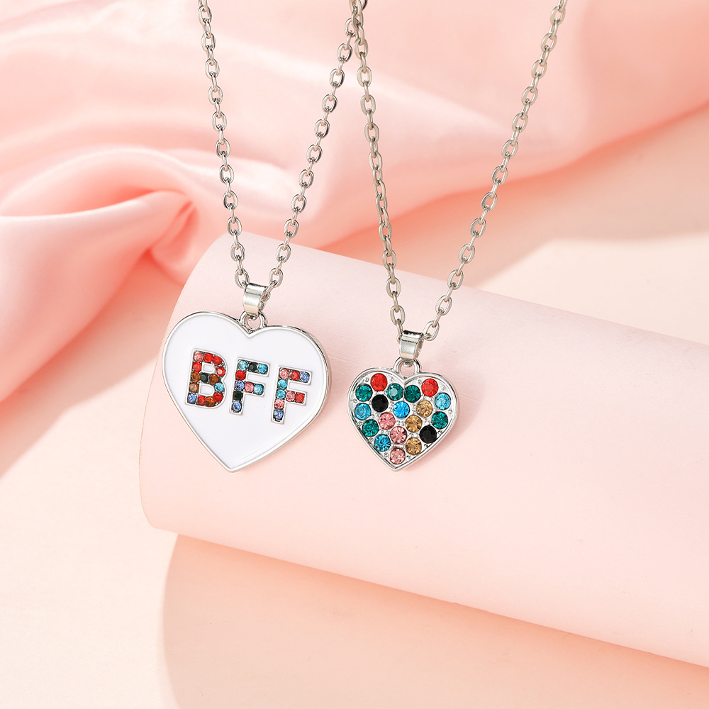 collier de Stras en alliage Zinc, alliage de zinc, coeur, Placage, 2 pièces & unisexe & styles différents pour le choix & émail & avec strass, Vendu par fixé