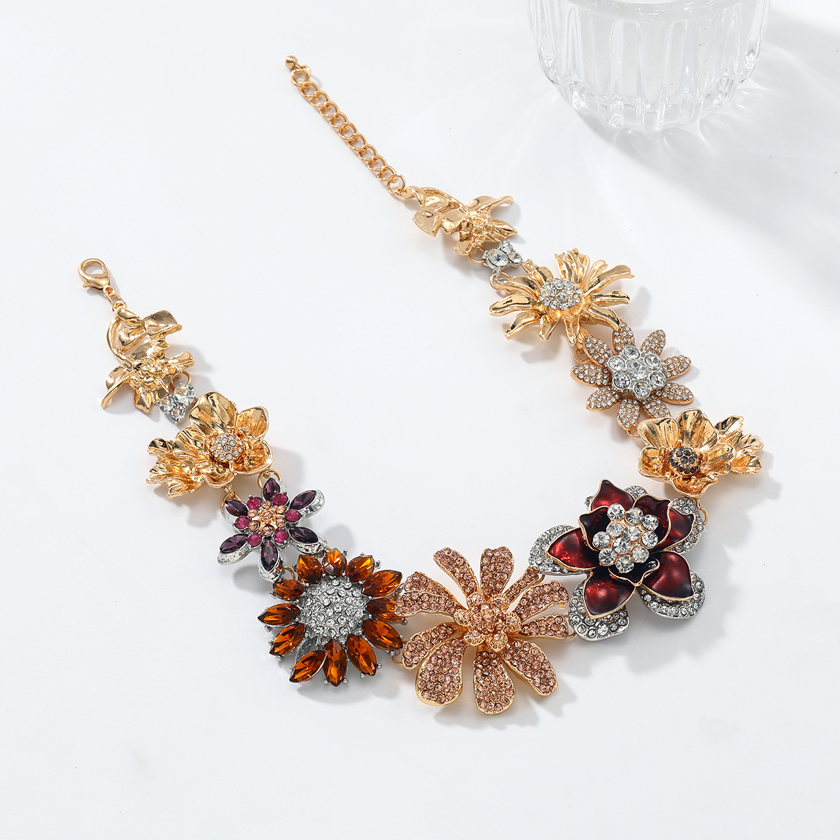 collier de Stras en alliage Zinc, alliage de zinc, Placage de couleur d'or, bijoux de mode & avec strass, plus de couleurs à choisir, Vendu par PC