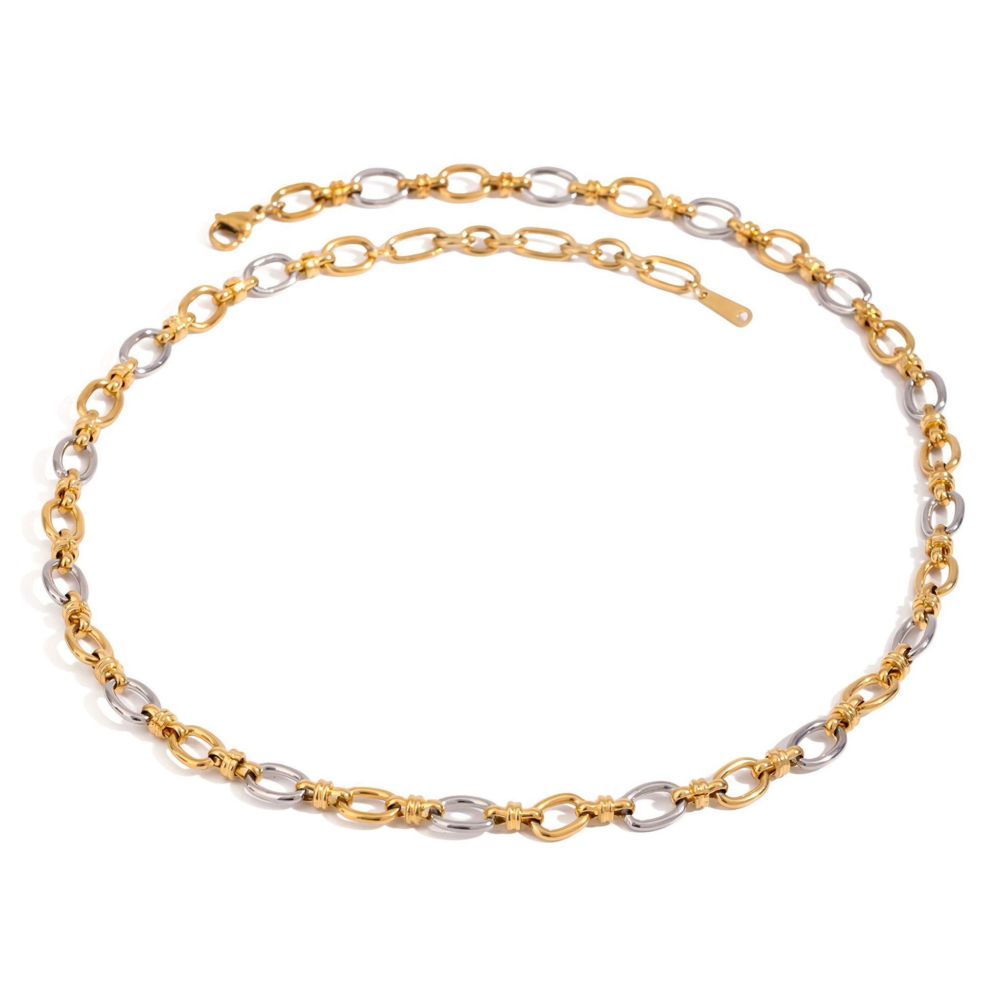 collier de chaîne en inox , acier inoxydable, Plaqué or 18K, normes différentes pour le choix & chaîne ovale & pour femme, Vendu par PC