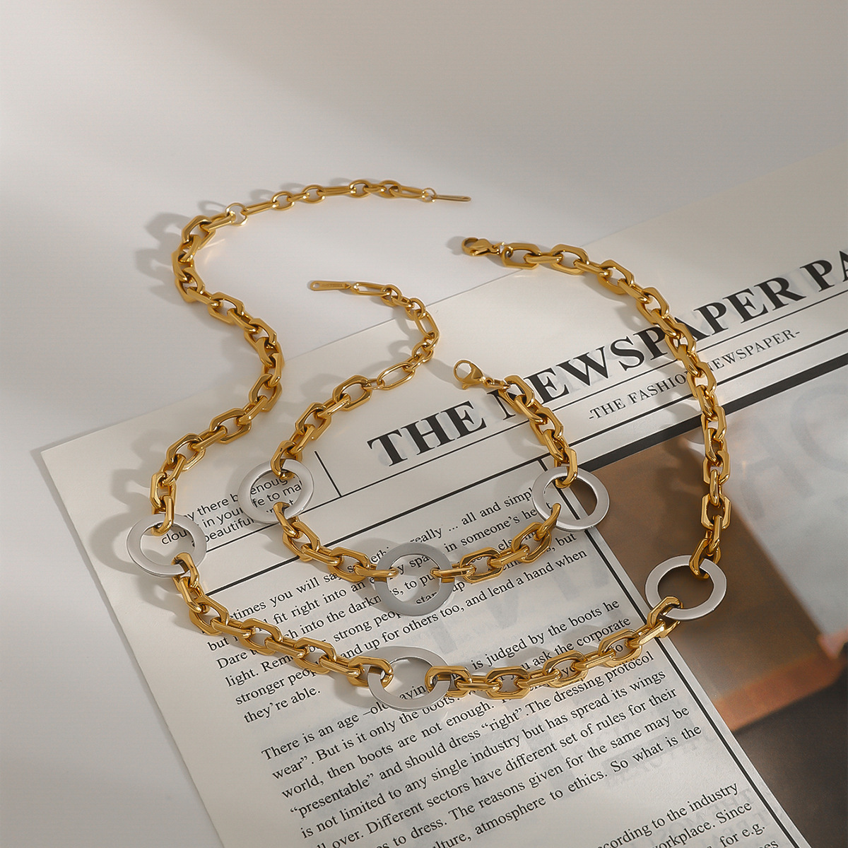collier de chaîne en inox , Acier inoxydable 304, Plaqué or 18K, styles différents pour le choix & pour femme & deux tons, Vendu par PC