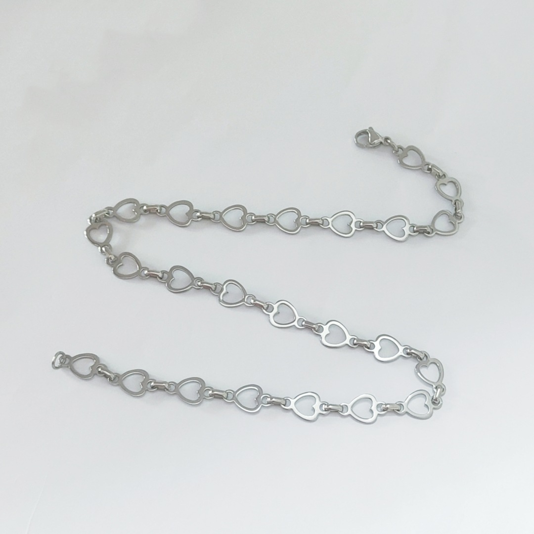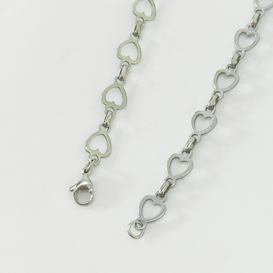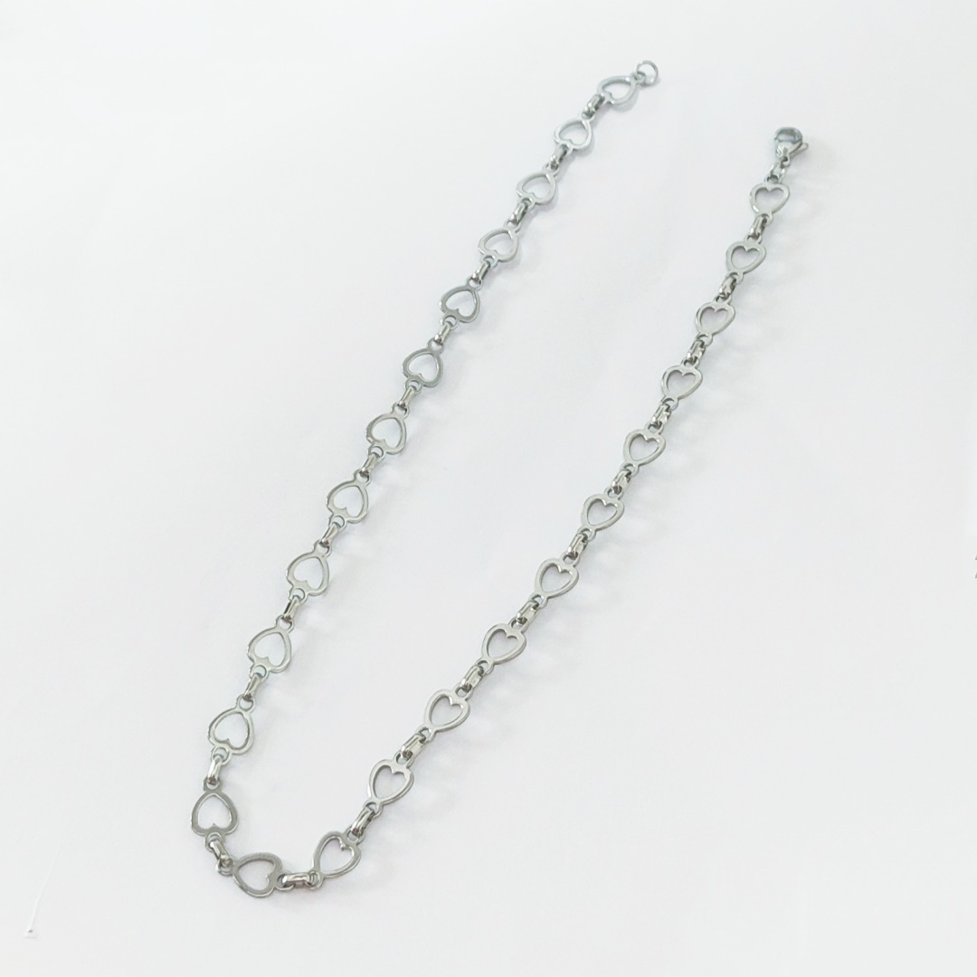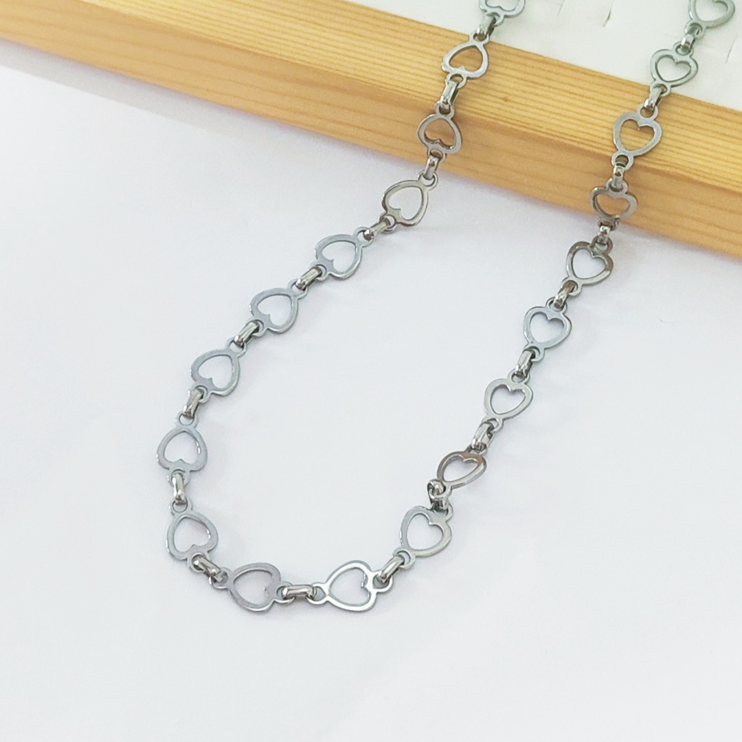 collier de chaîne en inox , Acier inoxydable 304, coeur, Placage de couleur argentée, pour femme, Vendu par PC