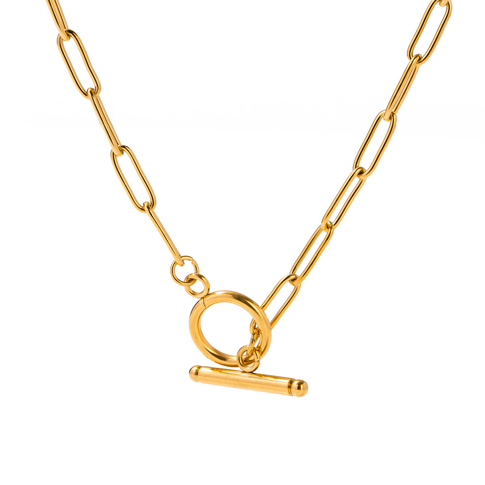 collier de chaîne en inox , acier inoxydable, Plaqué or 18K, normes différentes pour le choix & chaîne ovale & pour femme, Vendu par PC