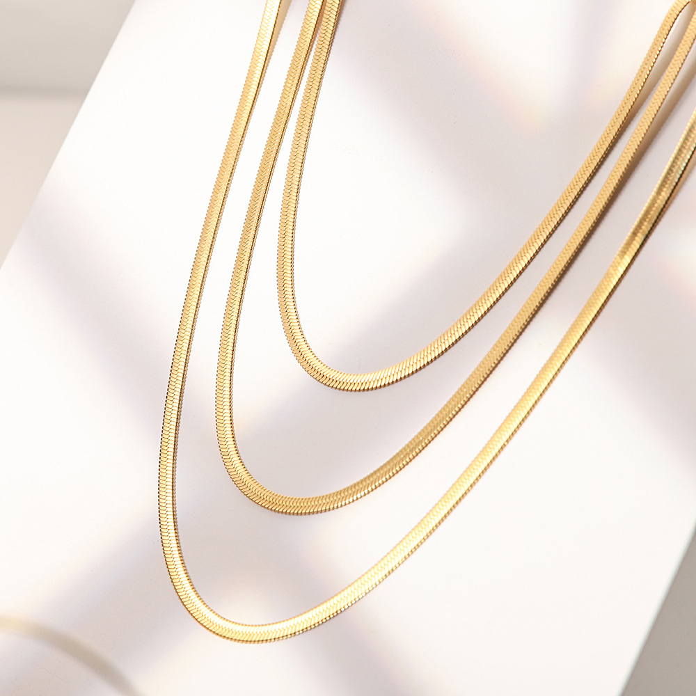 collier de chaîne en inox , Acier inoxydable 304, Plaqué or 18K, trois couches & bijoux de mode & pour femme, Longueur:Environ 21-50 cm, Vendu par PC