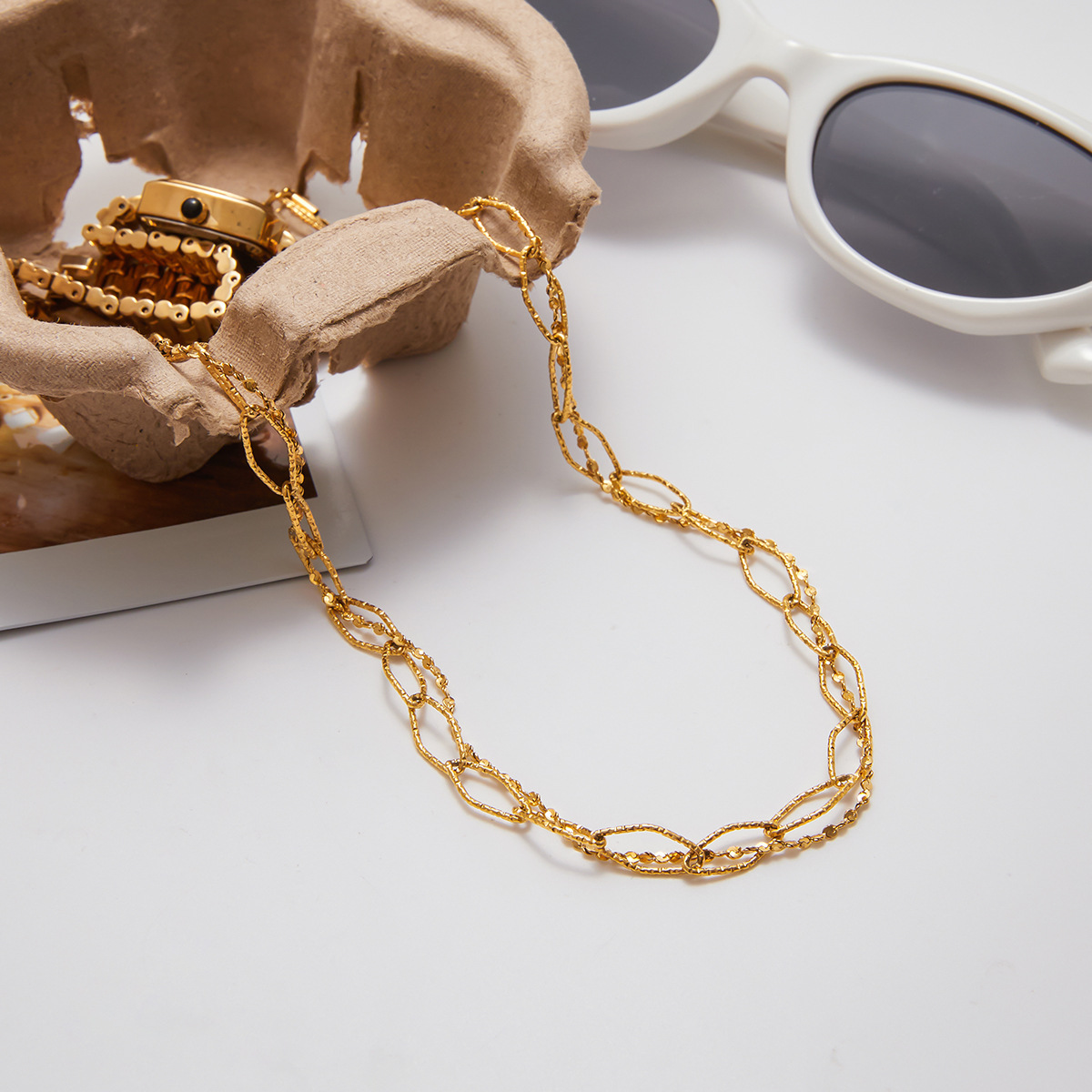 collier de chaîne en inox , acier inoxydable, Plaqué or 18K, normes différentes pour le choix & chaîne ovale & pour femme, Vendu par PC