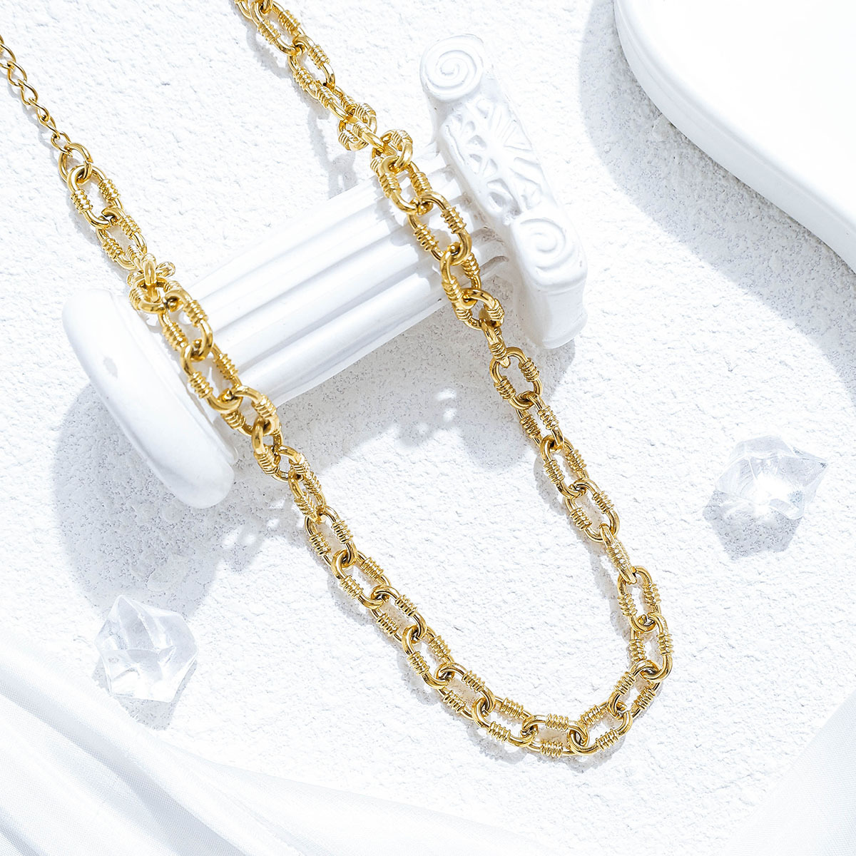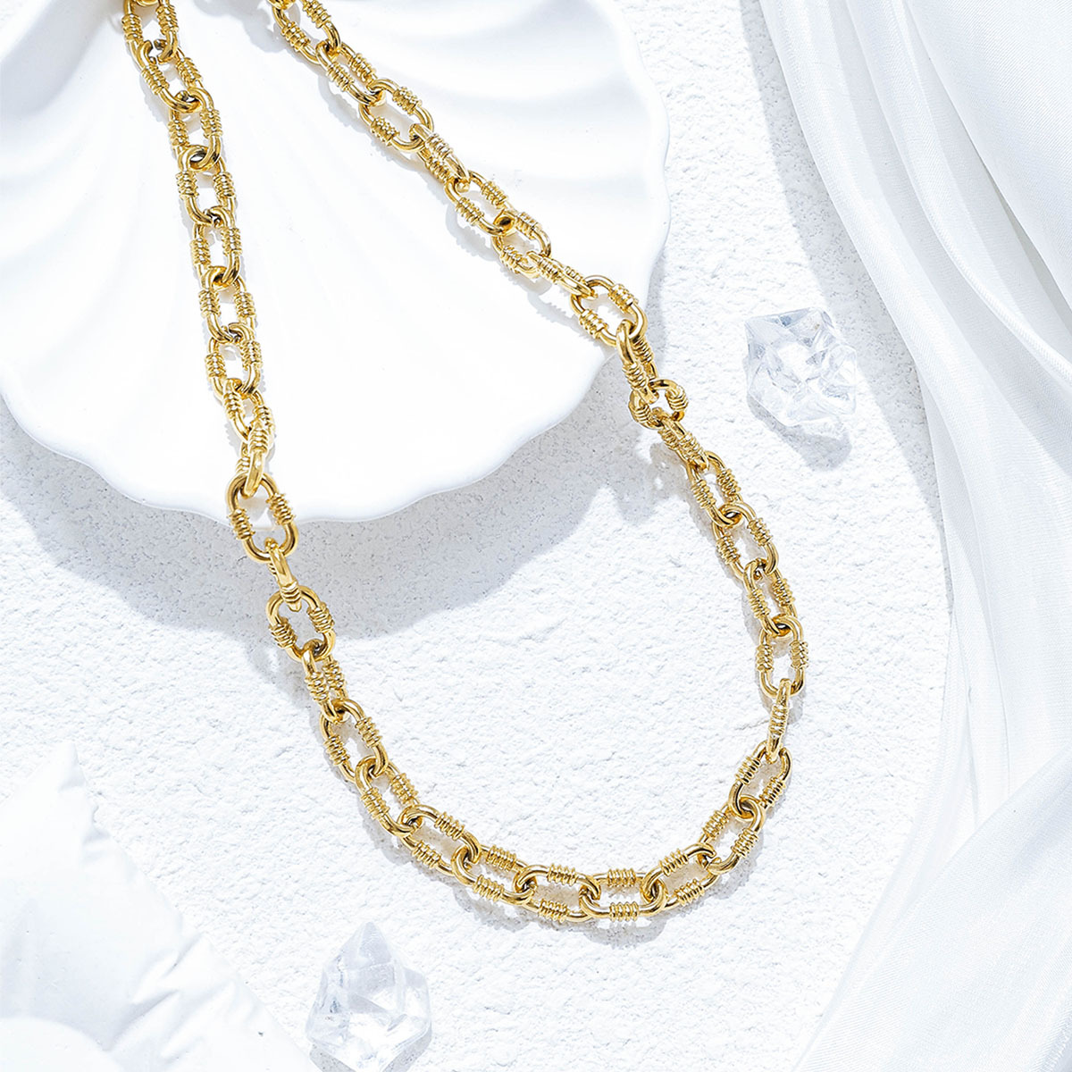 collier de chaîne en inox , acier inoxydable, Plaqué or 18K, normes différentes pour le choix & chaîne ovale & pour femme, Vendu par PC