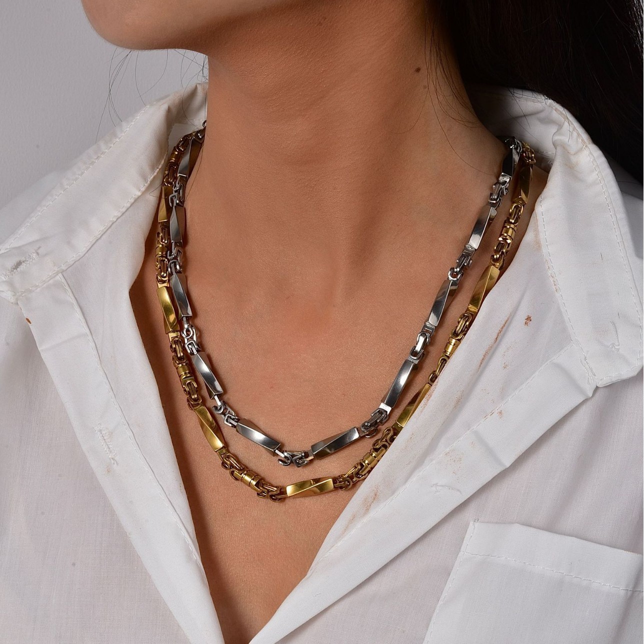 collier de chaîne en inox , acier inoxydable, électrolysation, unisexe, argent, Vendu par PC