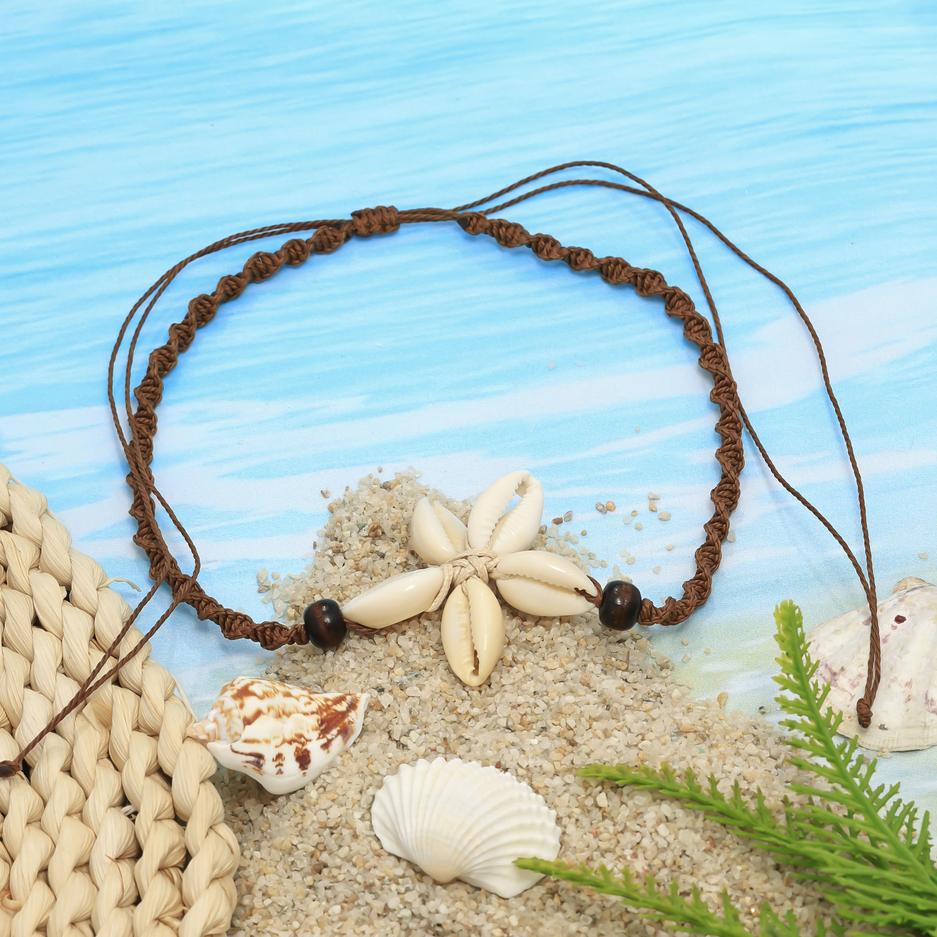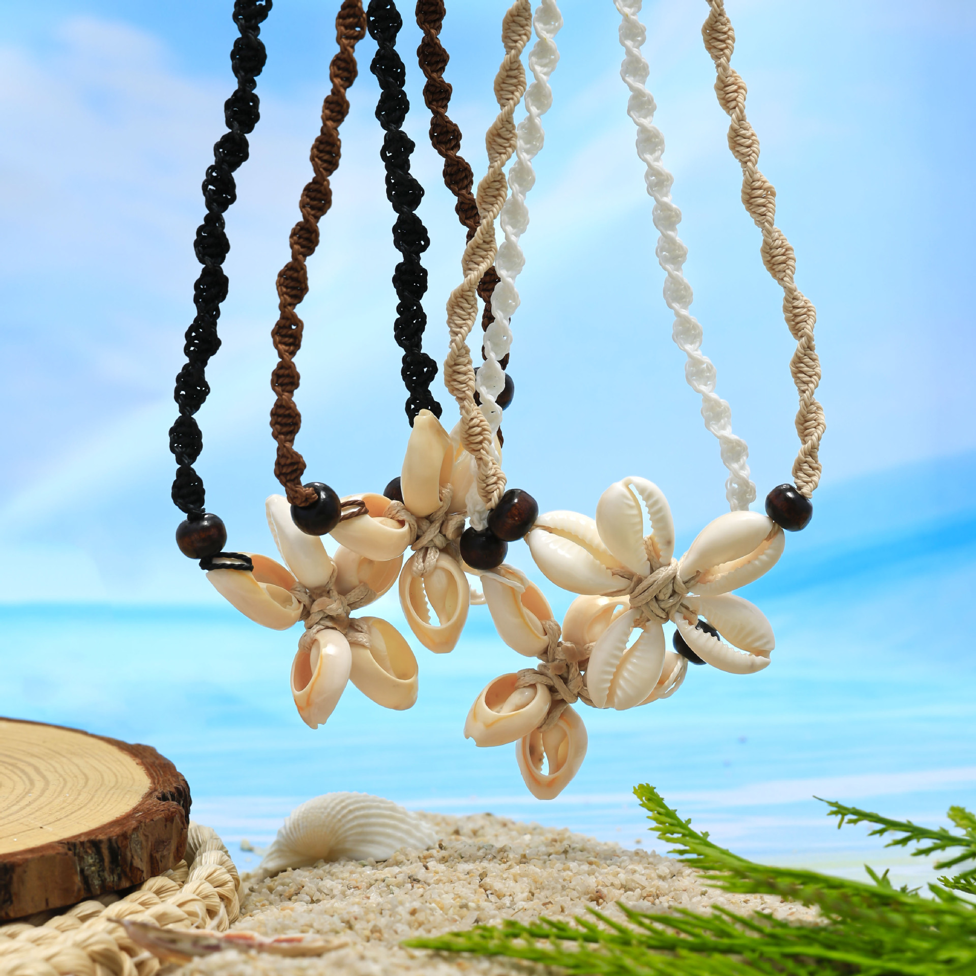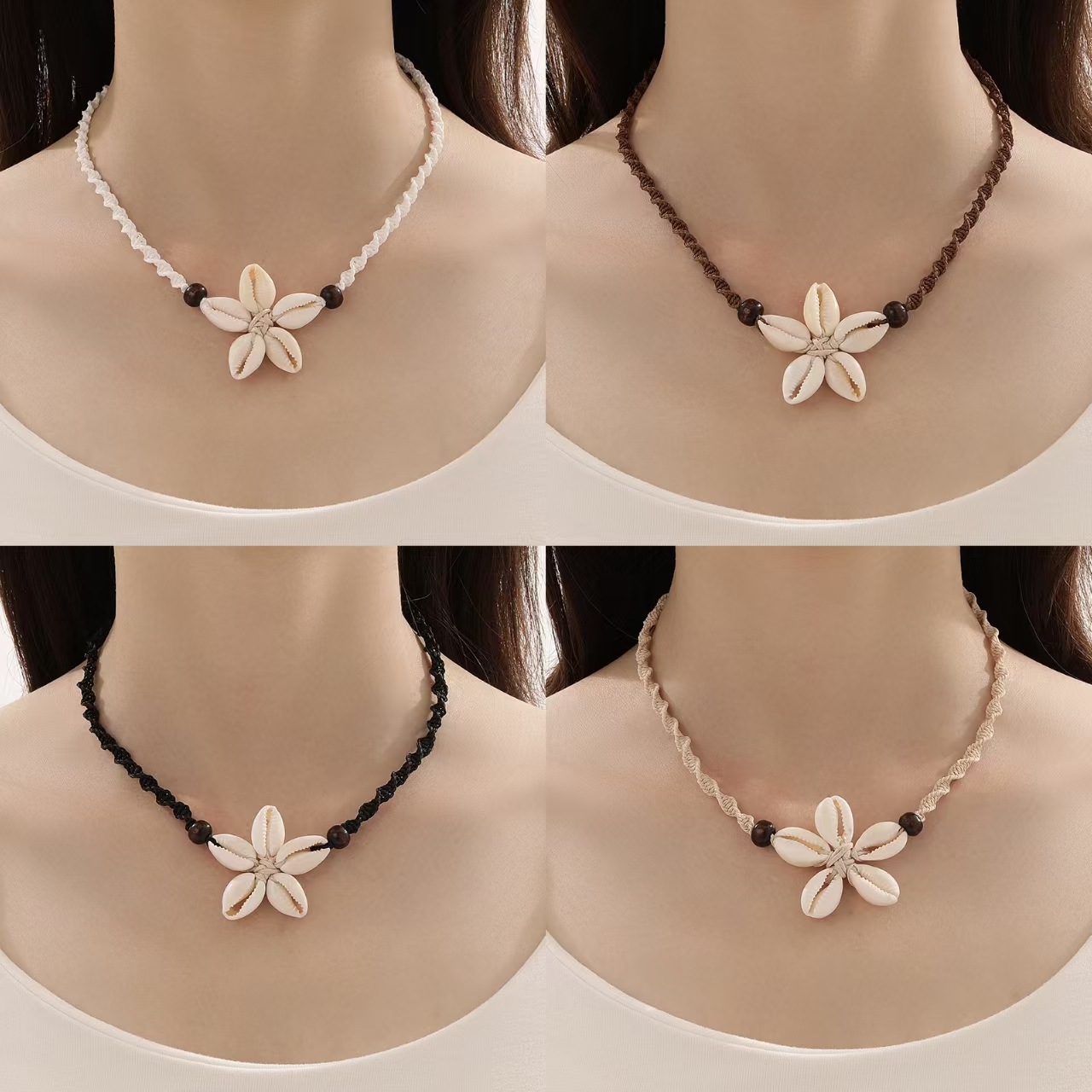 coquille collier, avec cordon de polyester & bois, fleur, fait à la main, réglable & pour femme, plus de couleurs à choisir, Longueur:Environ 24.4 pouce, Vendu par PC