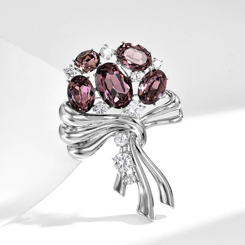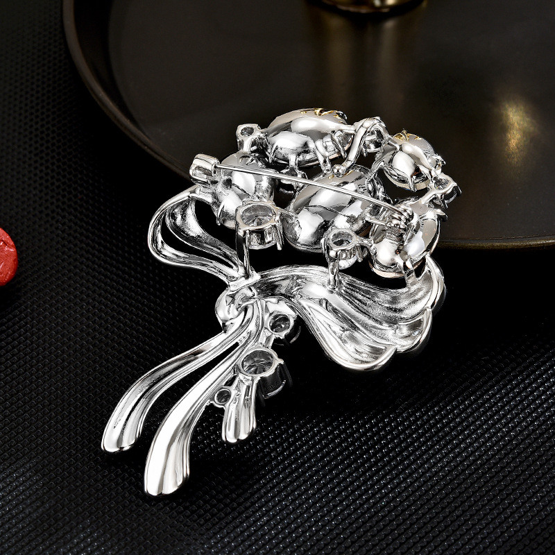 cristal Broche, laiton, avec Cristal autrichien, Placage, pavé de micro zircon & pour femme, argent, 68x48mm, Vendu par PC