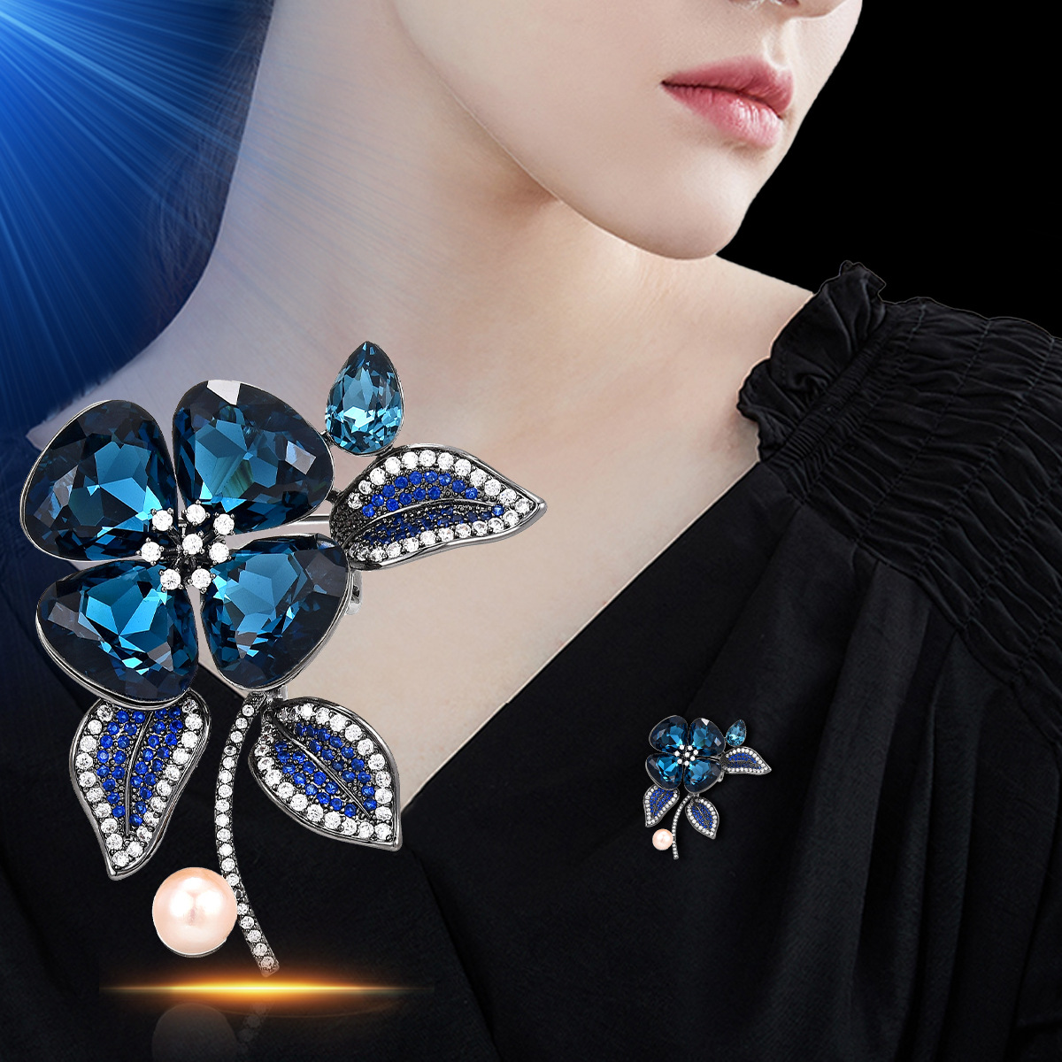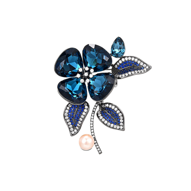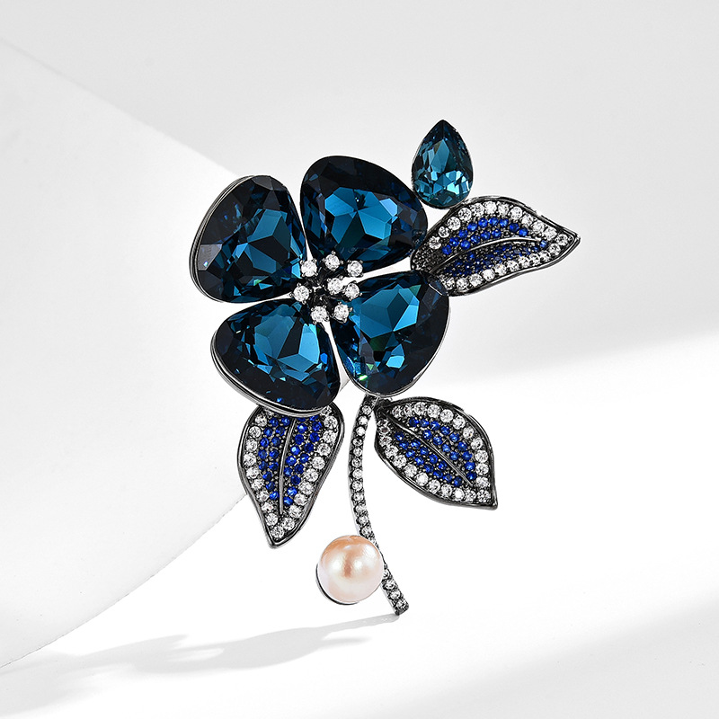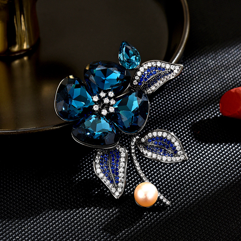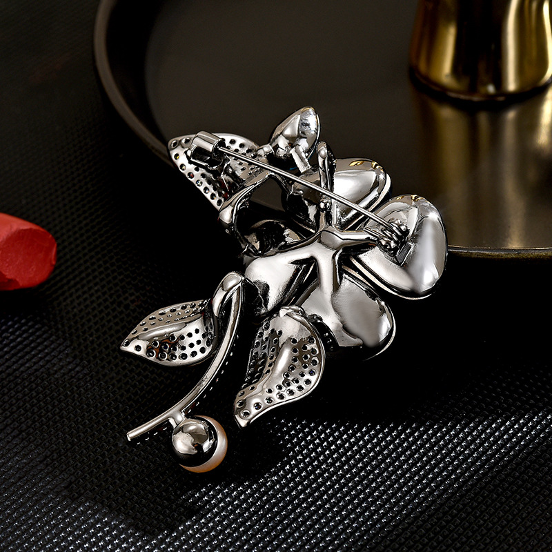 cristal Broche, laiton, avec Cristal autrichien & perle d'eau douce cultivée, Placage, pavé de micro zircon & pour femme, argent, 46x54mm, Vendu par PC