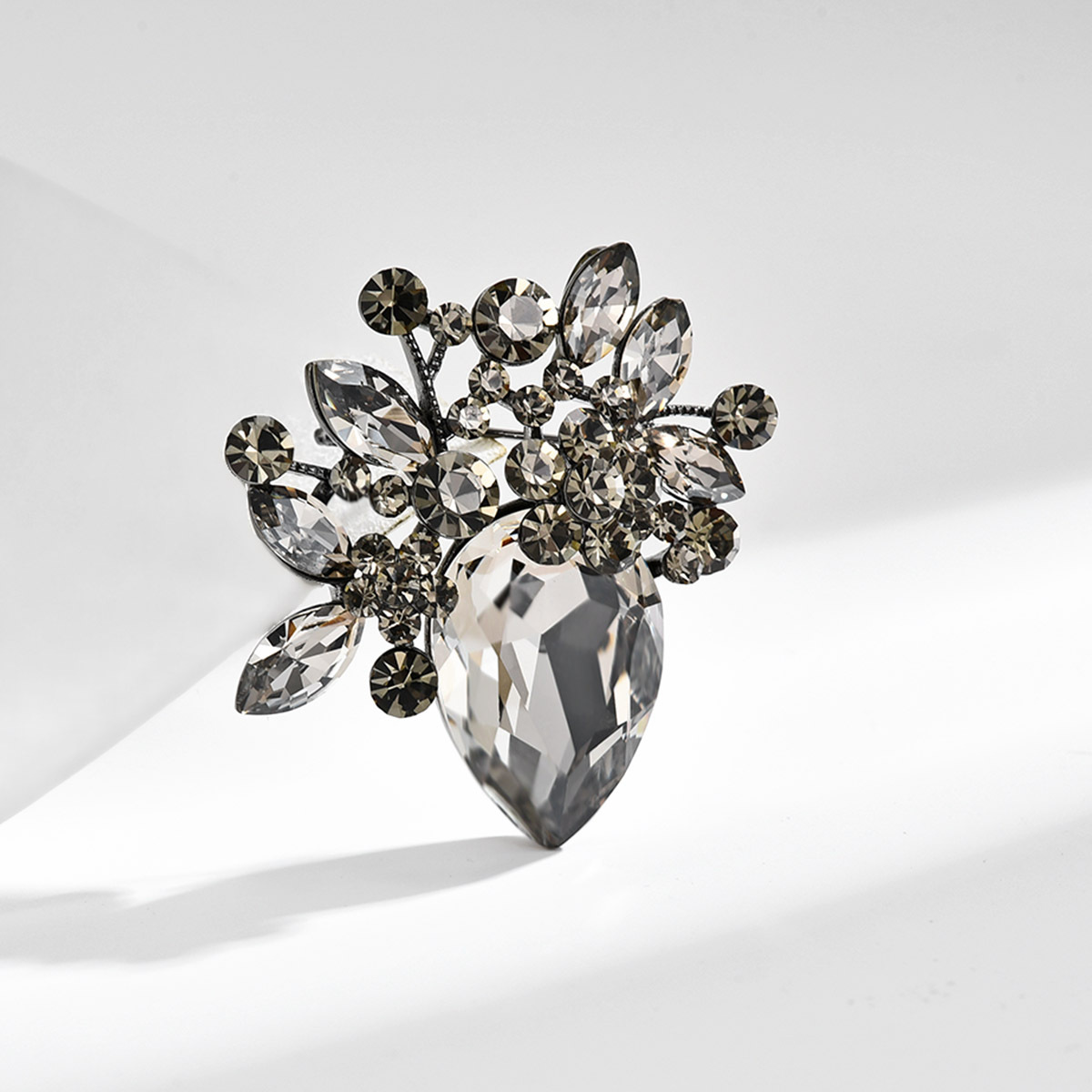 cristal Broche, alliage de zinc, avec cristal, larme, Placage de couleur noire de plumbum, facettes & avec strass, protéger l'environnement, sans nickel, plomb et cadmium Vendu par PC