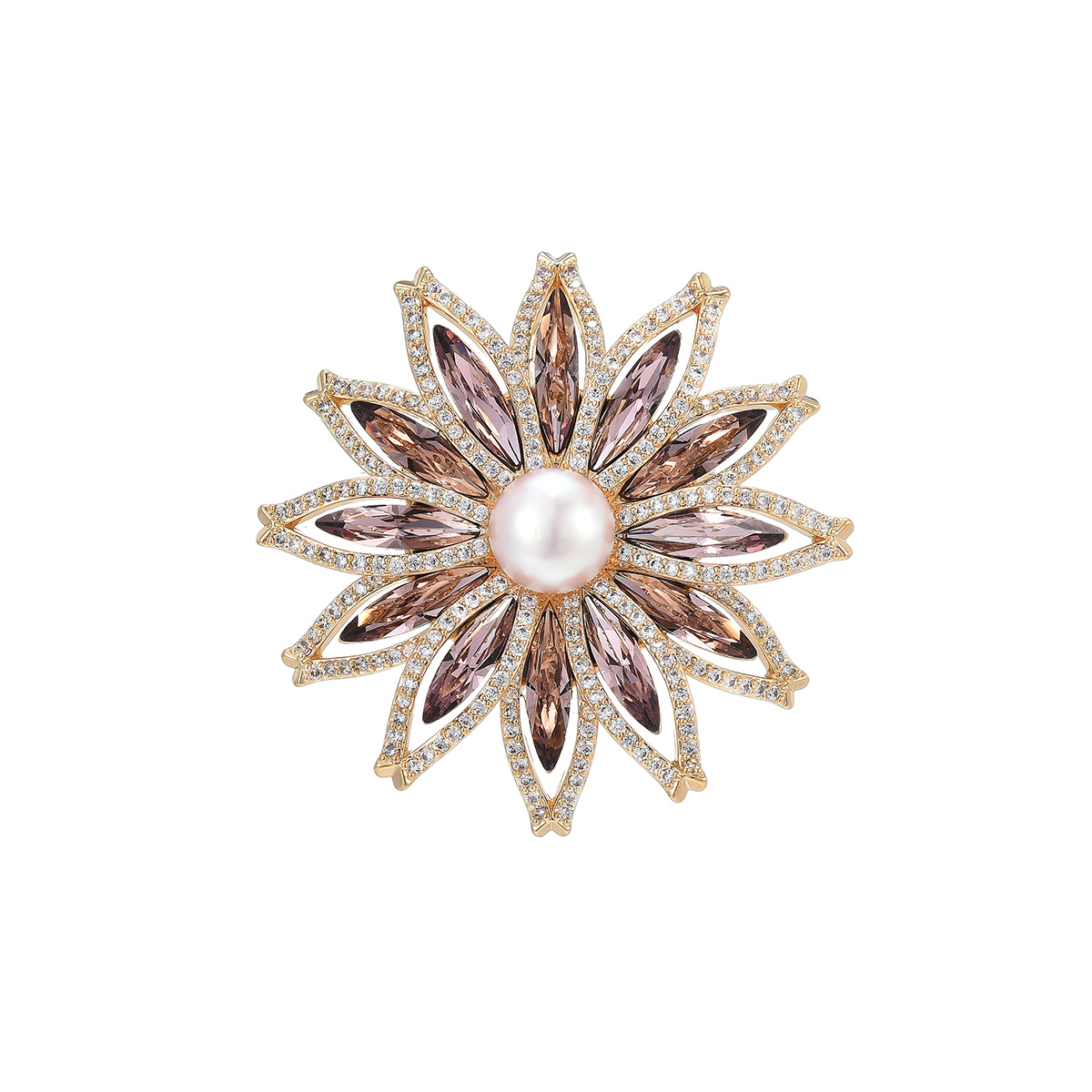 cristal Broche, laiton, avec Shell Pearl & Cristal autrichien, Placage, pavé de micro zircon & pour femme, doré, 54x54mm, Vendu par PC