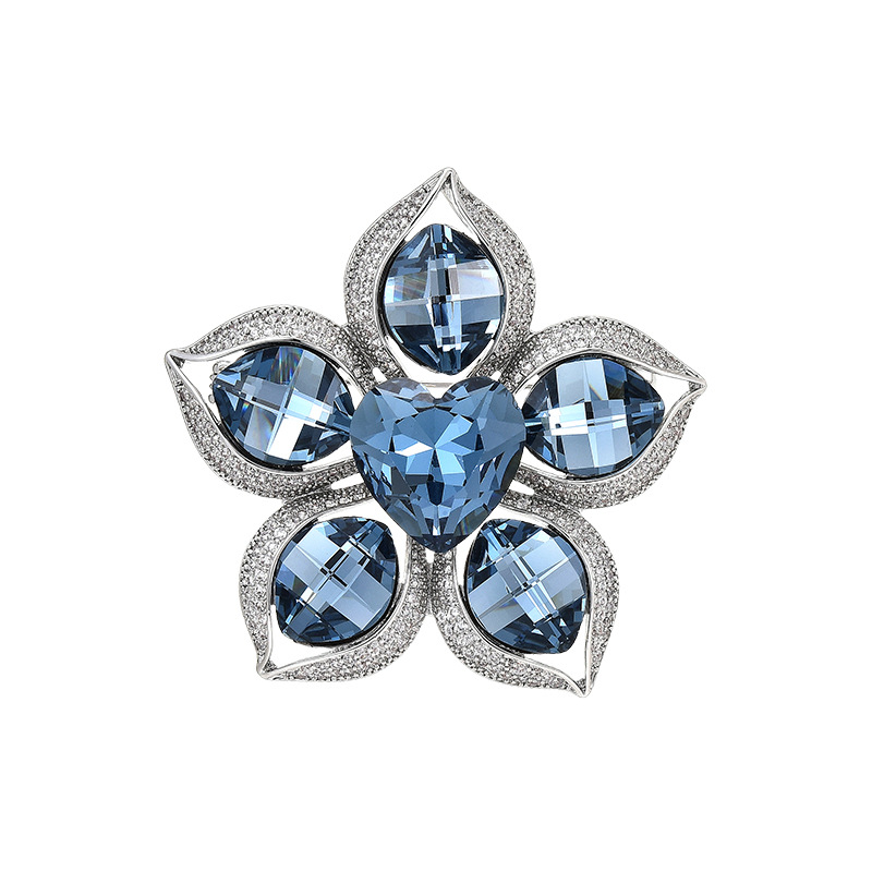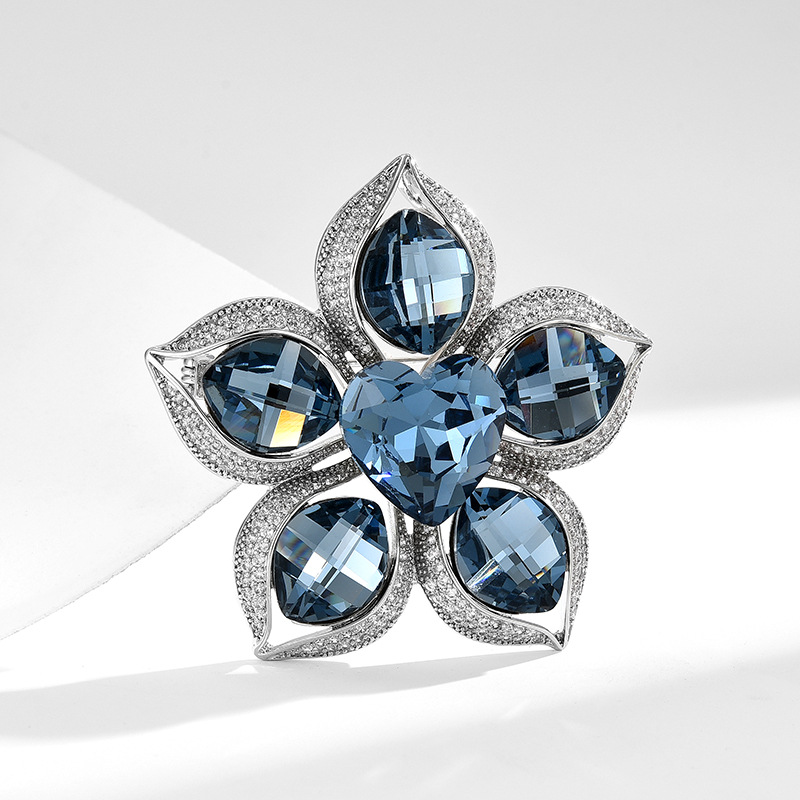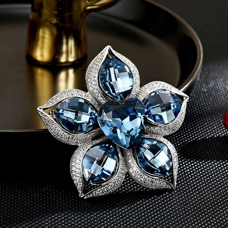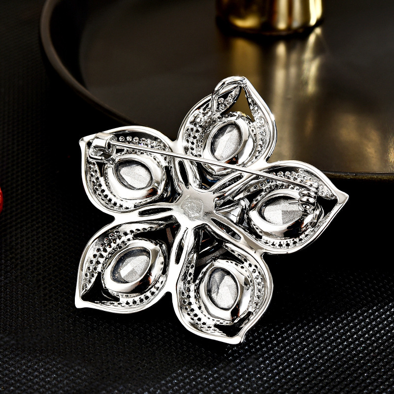 cristal Broche, laiton, avec Cristal autrichien, pavé de micro zircon & pour femme, argent, 48x50mm, Vendu par PC