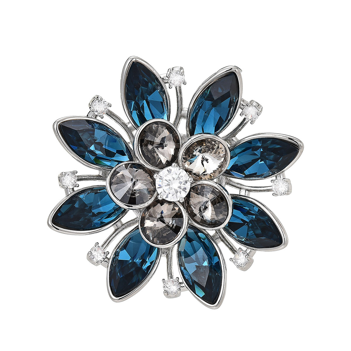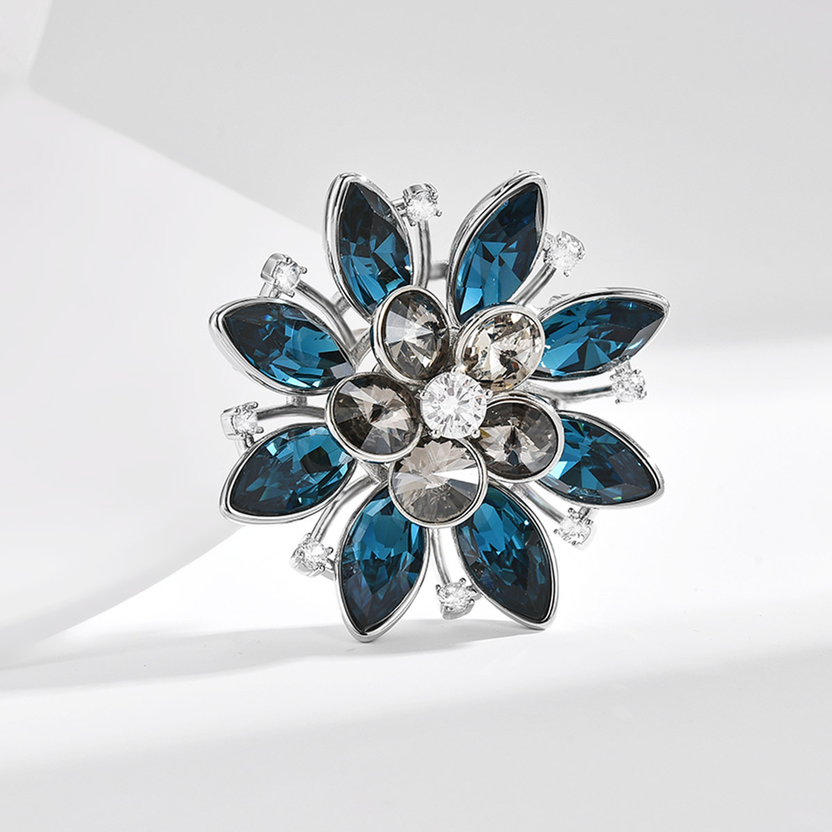 cristal Broche, alliage de zinc, avec cristal, fleur, Placage de couleur argentée, facettes & avec strass, protéger l'environnement, sans nickel, plomb et cadmium Vendu par PC